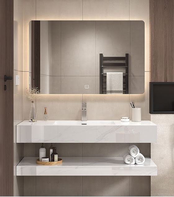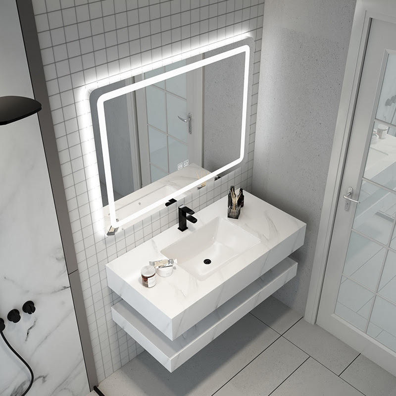 Trên đây là trọn bộ đầy đủ một bộ bàn đá bao gồm bàn đá 2 tầng, gương led, vòi và phụ kiện đi kèm.