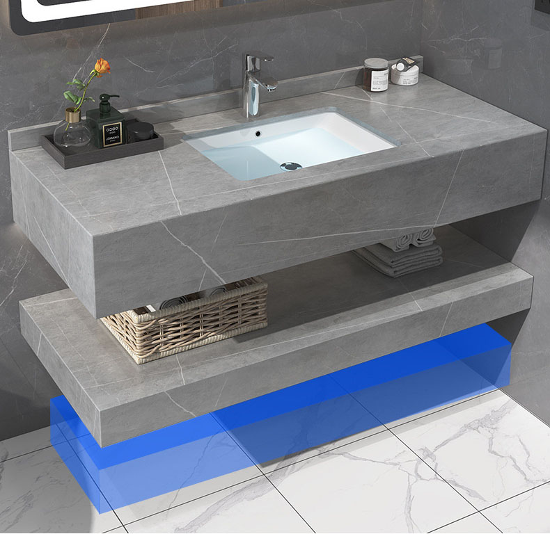 Bàn đá trên kích thước: 50x80x18cm - Chất liệu đá nhân tạo chống xước ghi xám