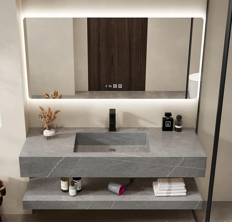 Bàn đá trên kích thước: 50x100x18cm - Chất liệu đá nhân tạo chống xước ghi xám