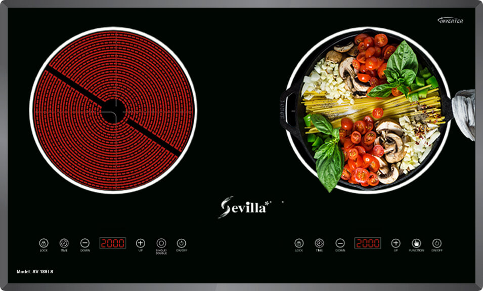 ✅ Chức năng lựa chọn 2 vòng bếp điện phù hợp với từng kích thước nồi