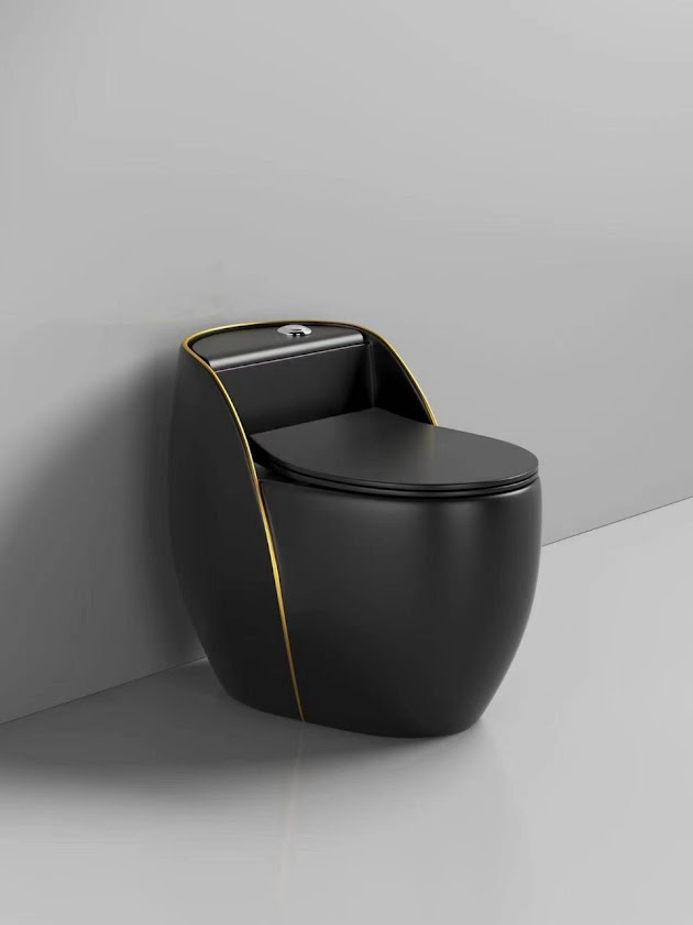 - KA6020 - Bồn cầu trứng liền khối đen viền vàng, men nano tuyết chống bám dính, nắp UF chông xước, bộ xả cao cấp, nước xả mạnh và êm.