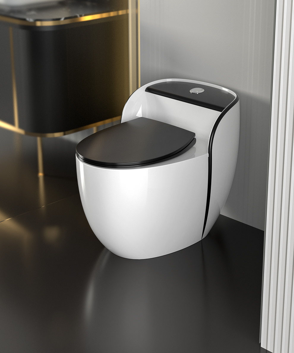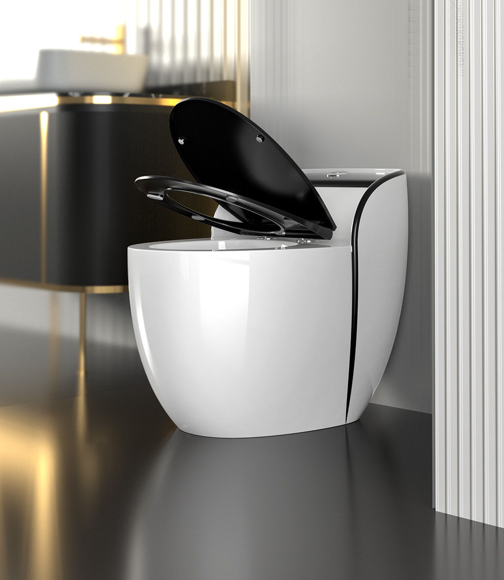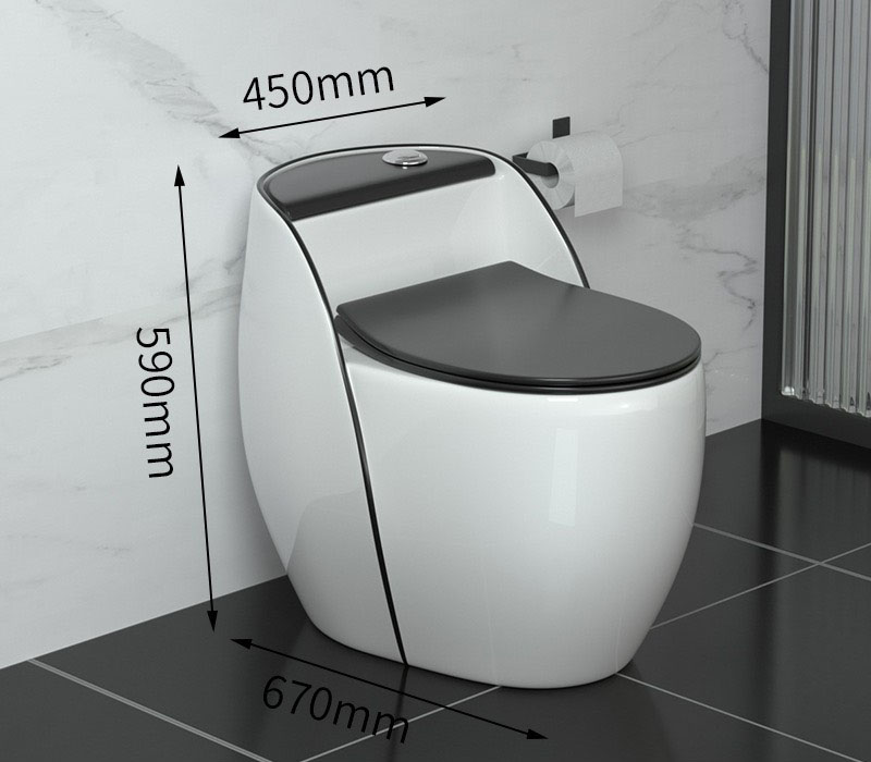 | Tên sản phẩm | BỒN CẦU TRỨNG TRẮNG VIỀN ĐEN NẮP ĐEN KA6005 |