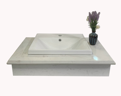 2. Bàn đá kết hợp chậu bán âm - Bàn đá nhân tạo, chậu sứ bán âm nung tráng men nano tuyết
