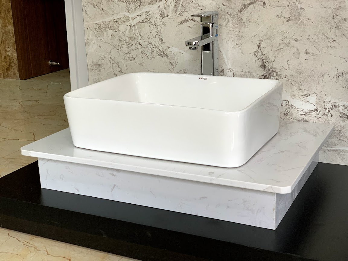 2. Chậu bàn đá nổi - Chất liệu bàn đá nhân tạo, chậu sứ nung tráng men nano tuyết