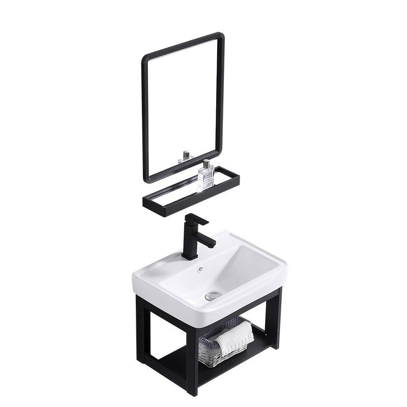 2. Chậu treo khung nhôm đen - Chất liệu hợp kim nhôm, chậu sứ nung tráng men nano tuyết