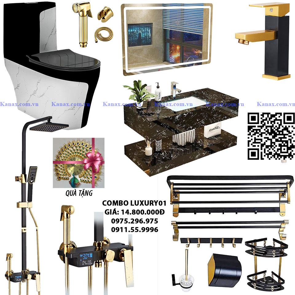 COMBO PHÒNG TẮM LUXURY01 - CBLX01 - GIÁ: 14.800.000Đ - Bao gồm 9 món đầy đủ.