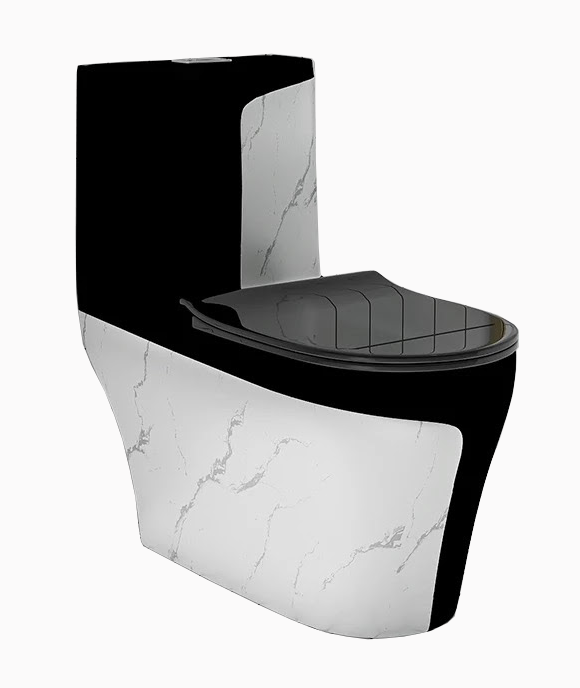 1. Bồn cầu liền khối đen trắng vân đá - chất liệu sứ nung tráng men - Thương hiệu kanax