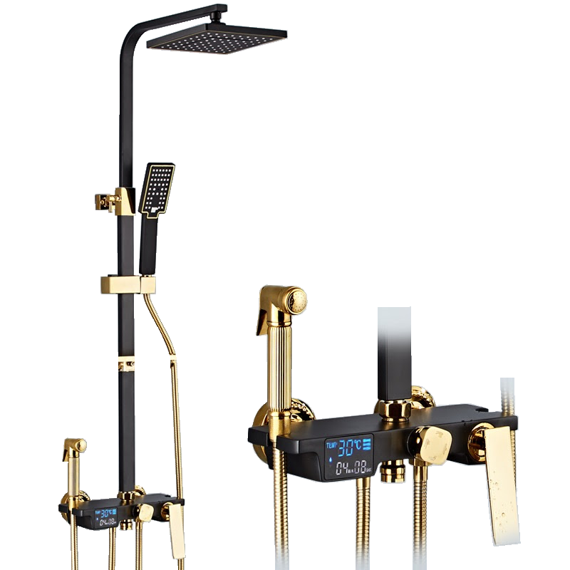 3. Sen cây nóng lạnh đen vàng hiển thị nhiệt độ - Chất liệu đồng sơn tĩnh điện đen vàng