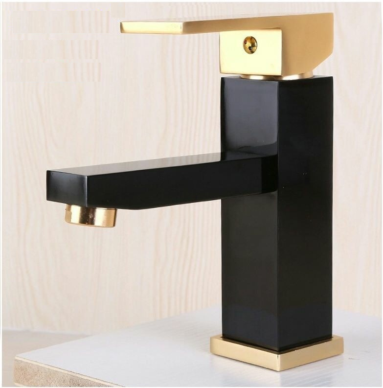 4. Vòi lavabo nóng lạnh đen vàng - Chất liệu đồng sơn tĩnh điện đen vàng