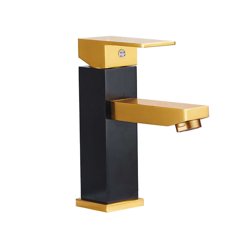 4. Vòi lavabo nóng lạnh đen vàng - Chất liệu đồng sơn tĩnh điện đen vàng
