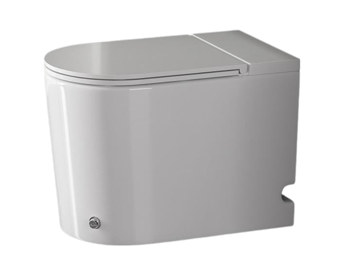 1. Bồn cầu liền khối cảm ứng đá chân xả nước - chất liệu sứ nung tráng men nano tuyết
