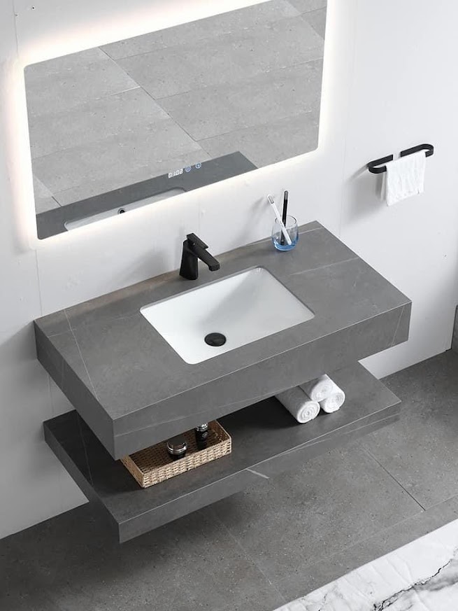 Bàn đá trên kích thước: 50x80x15cm - Chất liệu đá nhân tạo chống xước ghi xám
