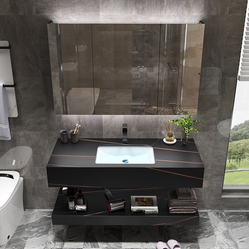 Bàn đá trên kích thước: 50x80x18cm - Chất liệu đá nhân tạo đen vân sọc