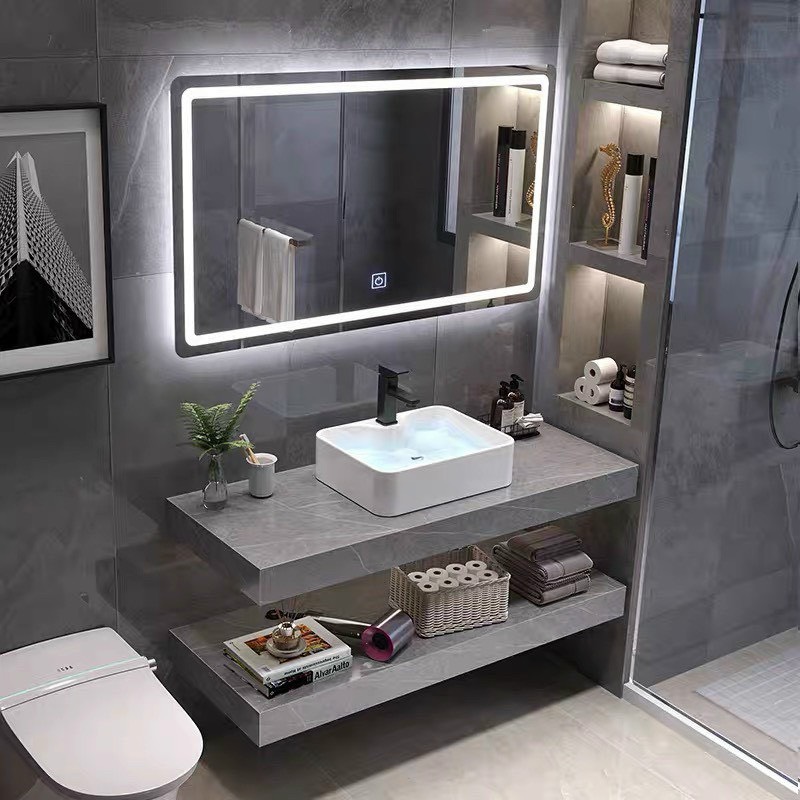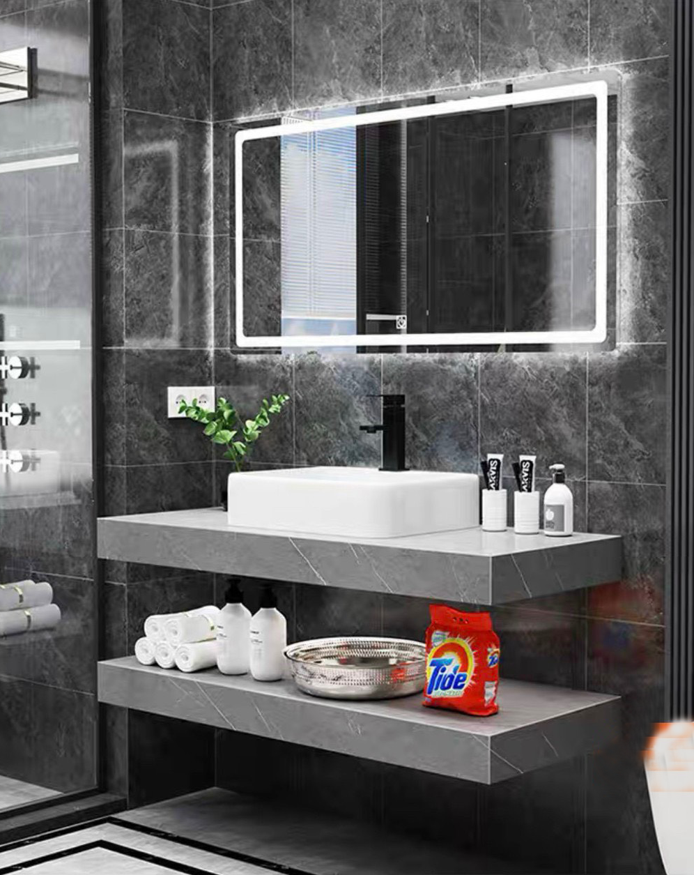 Bàn đá trên kích thước: 50x80x15cm - Chất liệu đá nhân tạo chống xước ghi xám