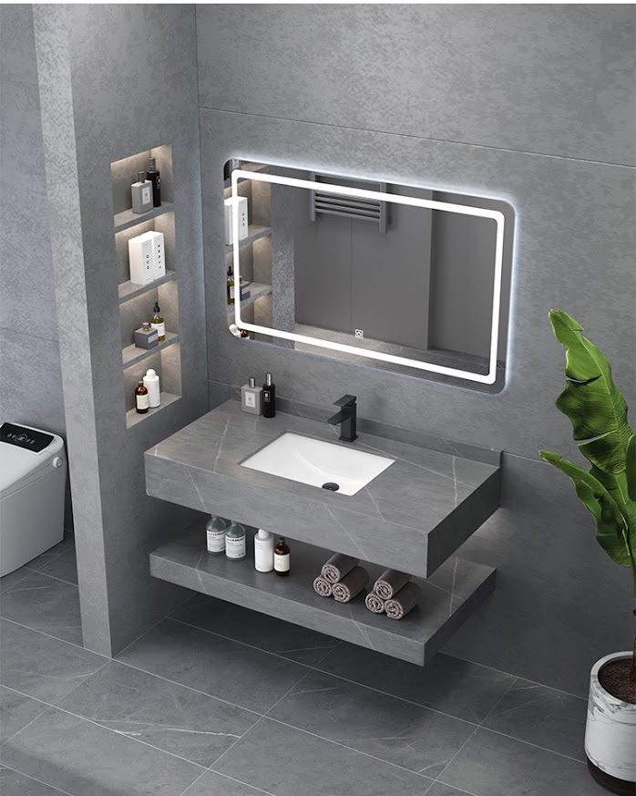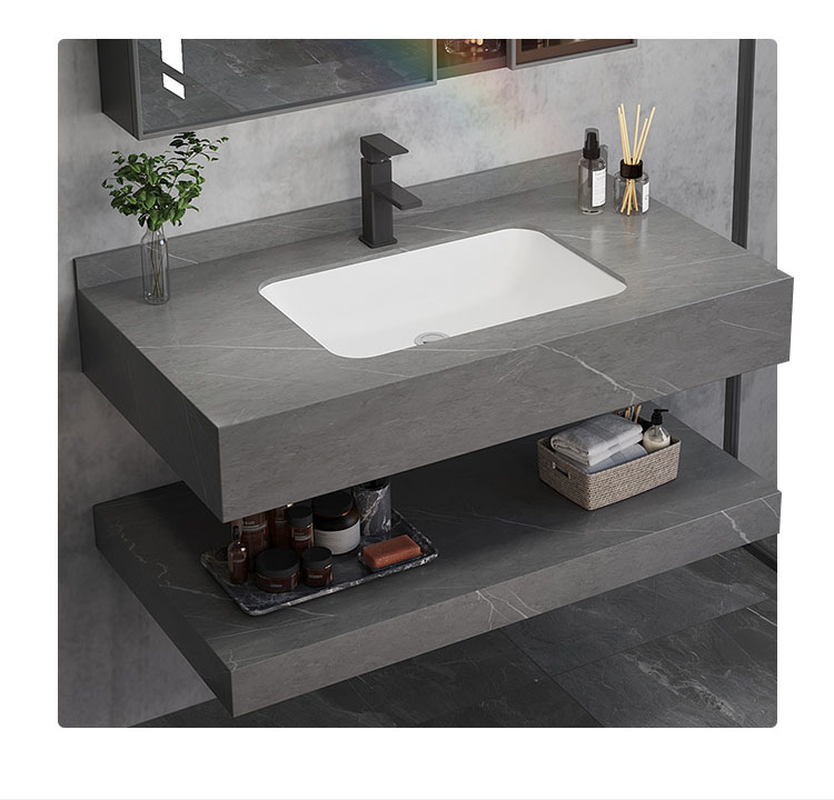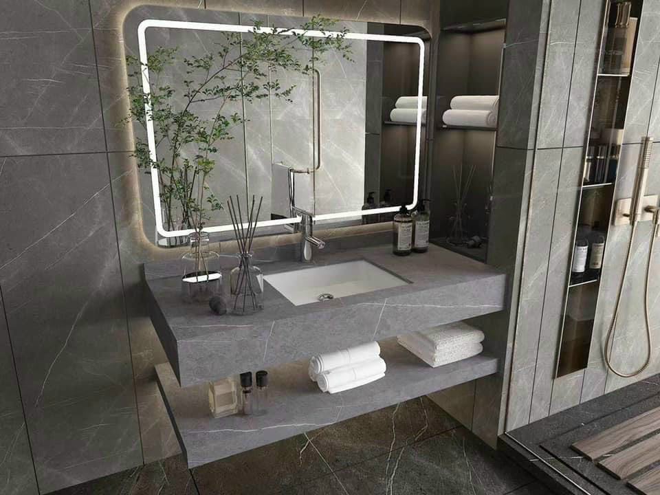 Bàn đá trên kích thước: 50x80x15cm - Chất liệu đá nhân tạo chống xước ghi xám