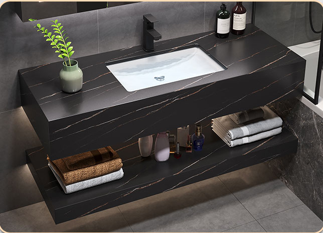 Bàn đá dưới kích thước: 50x80x10cm - Chất liệu đá nhân tạo chống xước đen xước