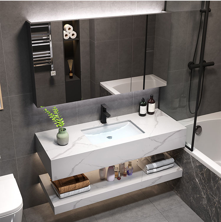 Bàn đá trên kích thước: 50x80x18cm - Chất liệu đá nhân tạo trắng vân sọc