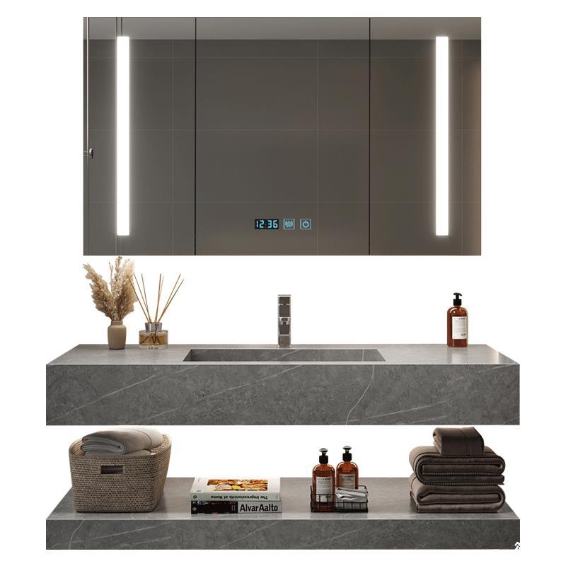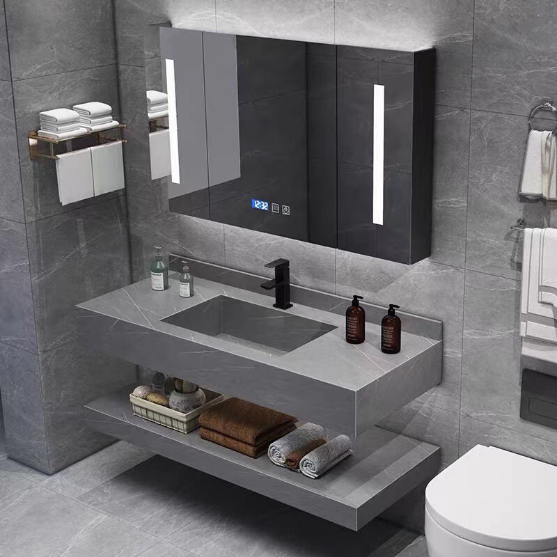 Bàn dưới kích thước: 50x80x10cm - Chất liệu đá nhân tạo chống xước ghi xám