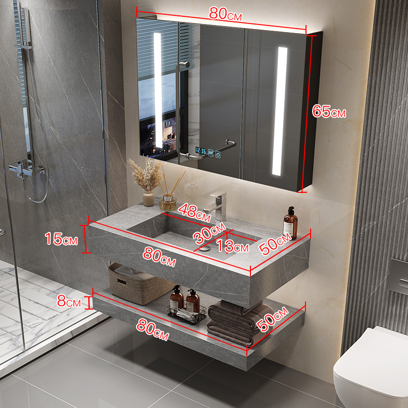 Bàn đá trên kích thước: 50x80x18cm - Chất liệu đá nhân tạo chống xước ghi xám