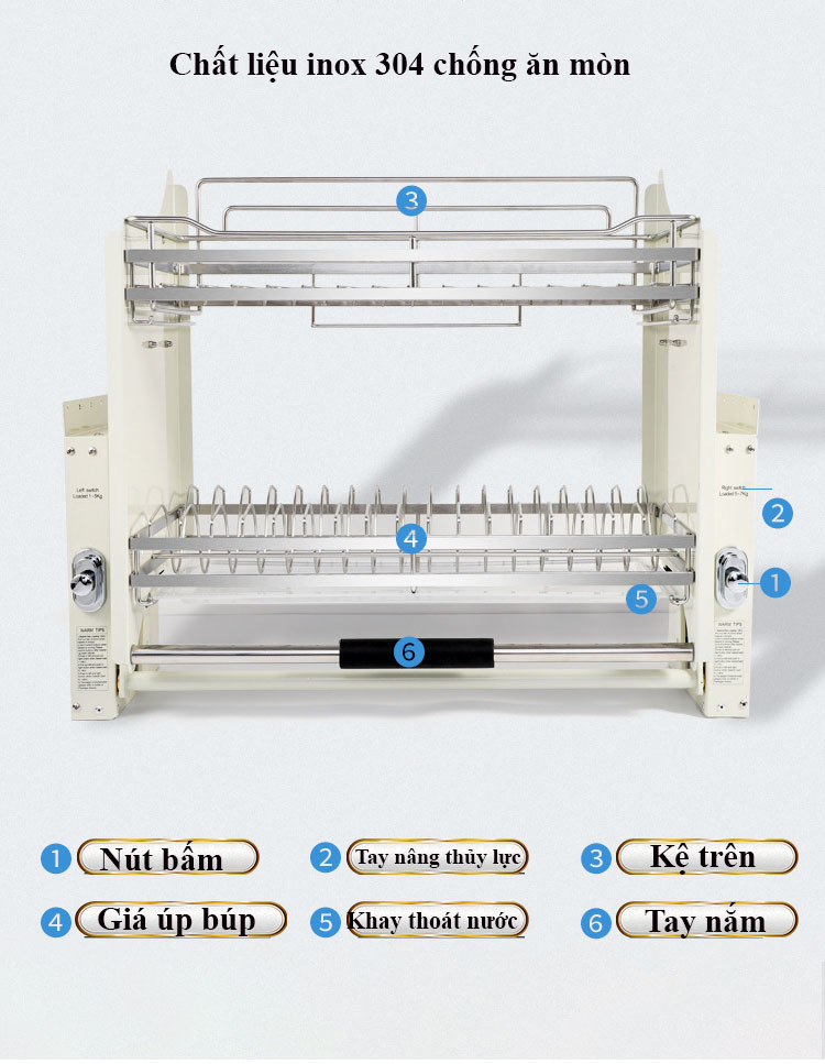| GK03-800 | Giá nâng hạ thông minh, nan dẹt | 765 X 265 X 550 | Bộ | inox304 xử lý bề mặt bằng công nghệ điện hóa |