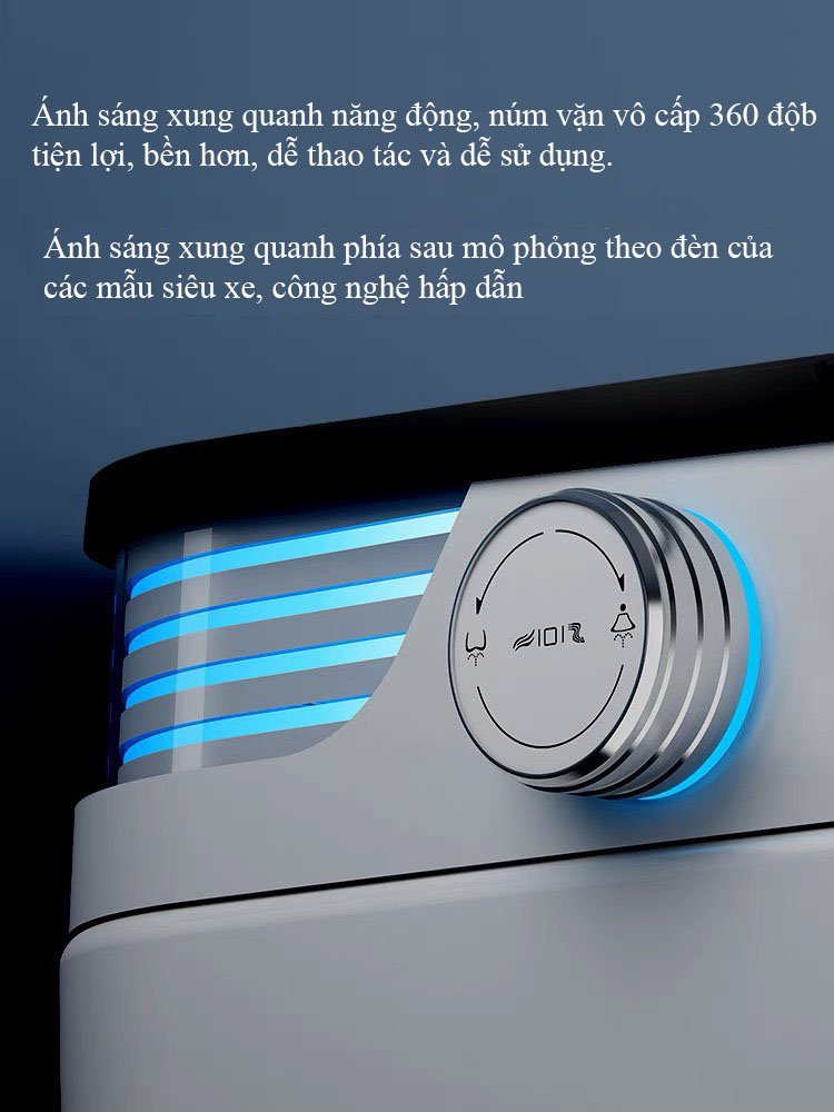 1.Đèn led hiển thị nhiệt độ. 2.Chế độ đóng nắp êm. 3.Tự động đóng mở nắp.