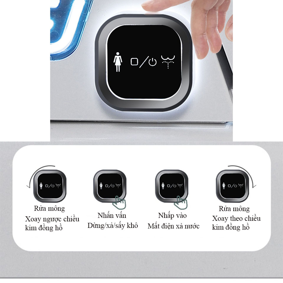 4.Chế độ vòi xịt hậu môn, xịt vệ sinh phụ nữ. 5.Chế độ sấy khô. 6.Chế độ làm ấm bệ ngồi.