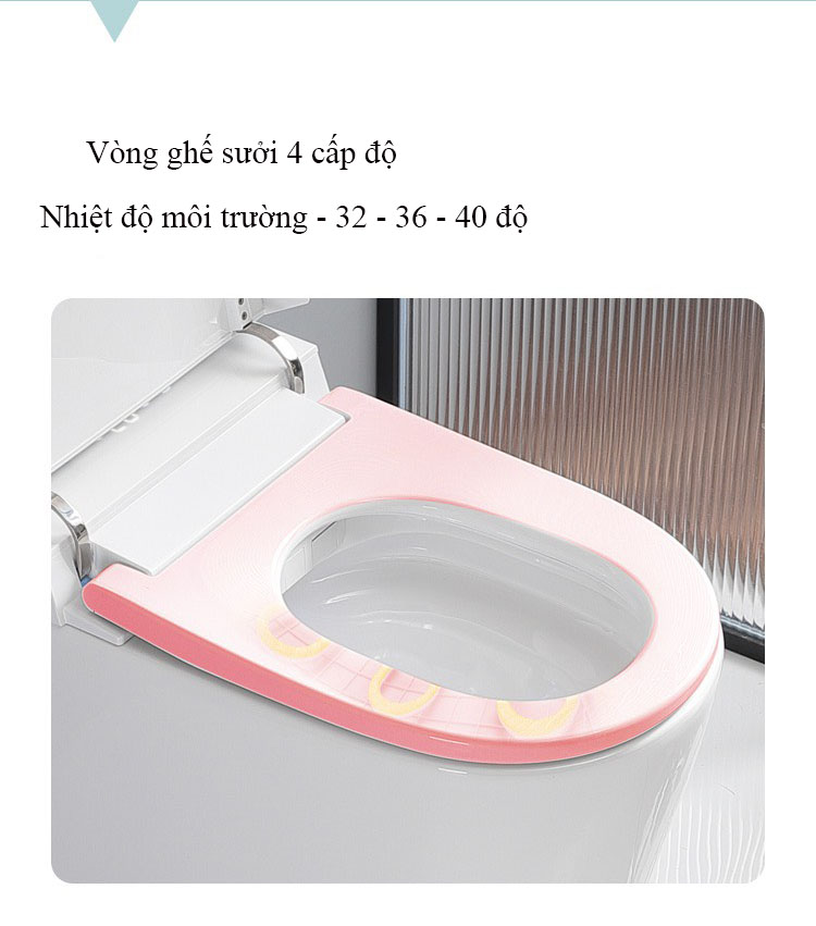 1.Đèn led hiển thị nhiệt độ. 2.Chế độ đóng nắp êm. 3.Tự động đóng mở nắp.