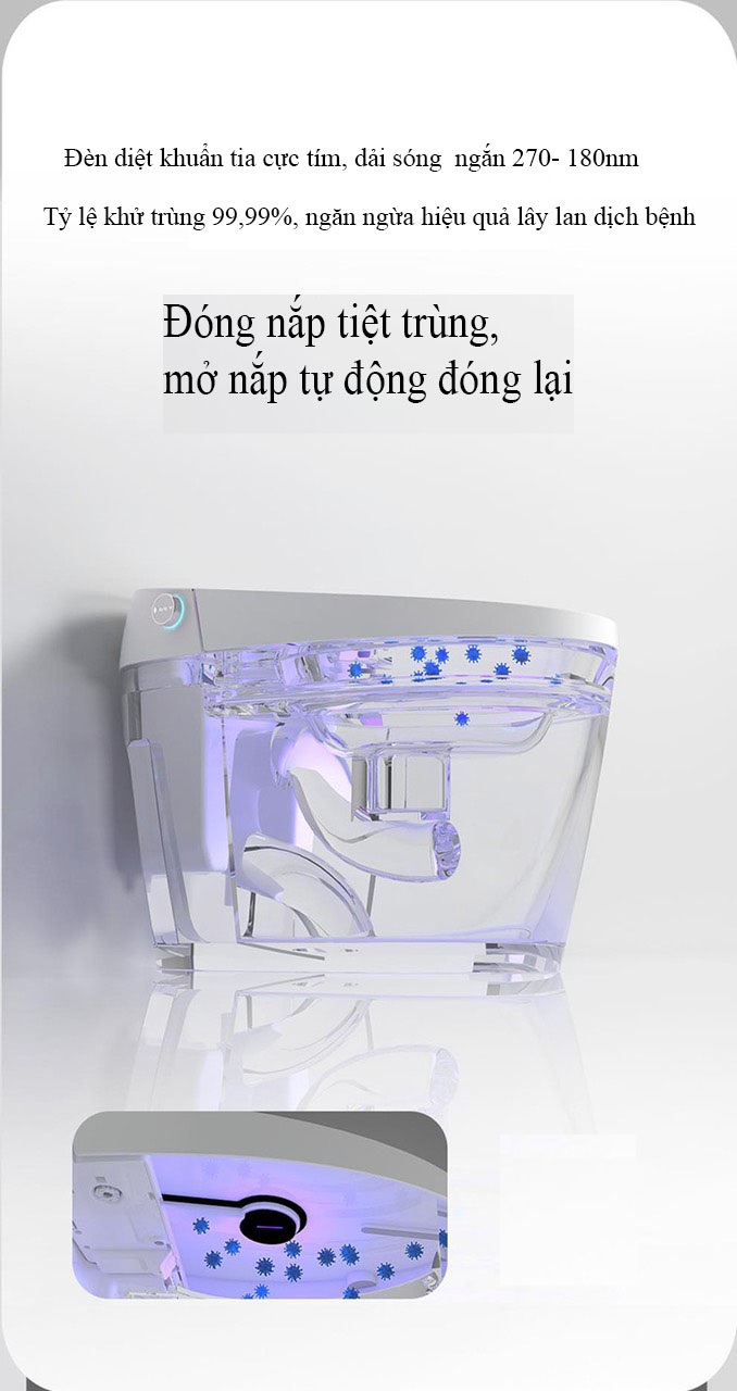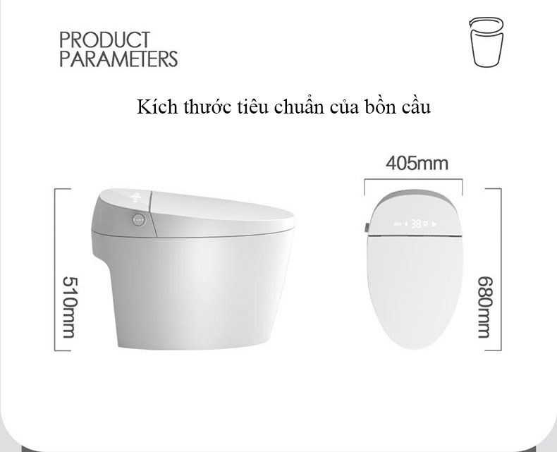 1.Đèn led hiển thị nhiệt độ. 2.Chế độ đóng nắp êm. 3.Tự động đóng mở nắp.