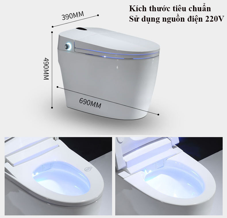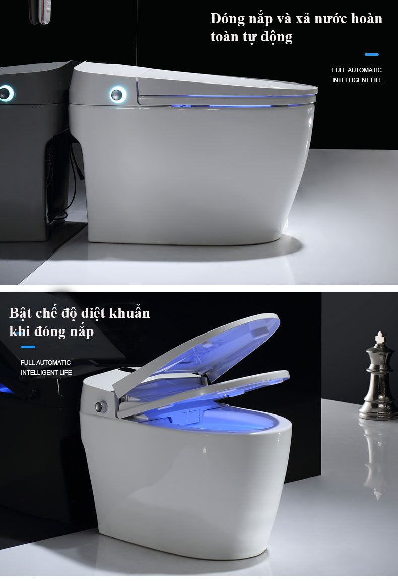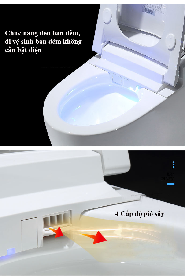 1.Đèn led hiển thị nhiệt độ. 2.Chế độ đóng nắp êm. 3.Tự động đóng mở nắp.