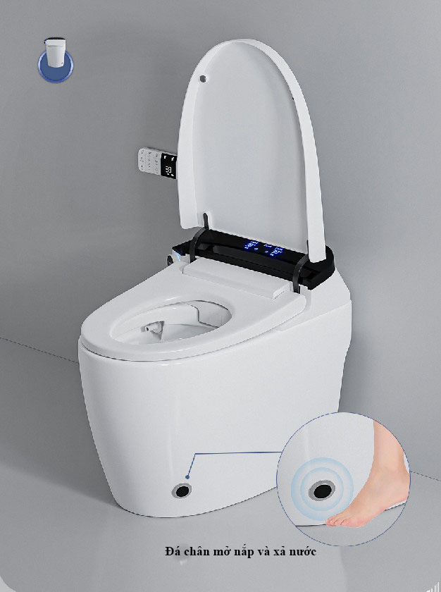 1.Đèn led hiển thị nhiệt độ. 2.Chế độ đóng nắp êm. 3.Tự động đóng mở nắp.