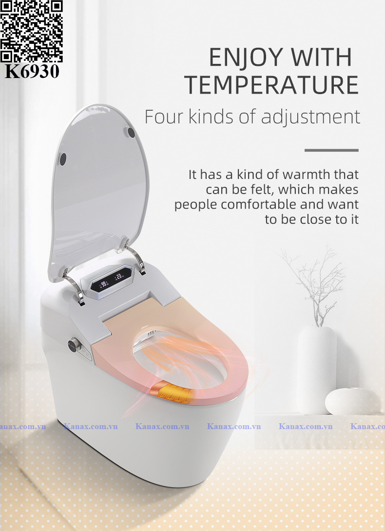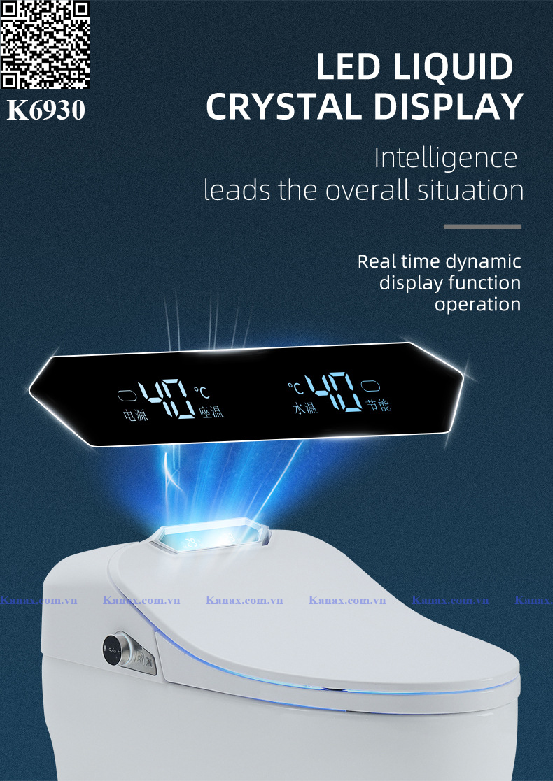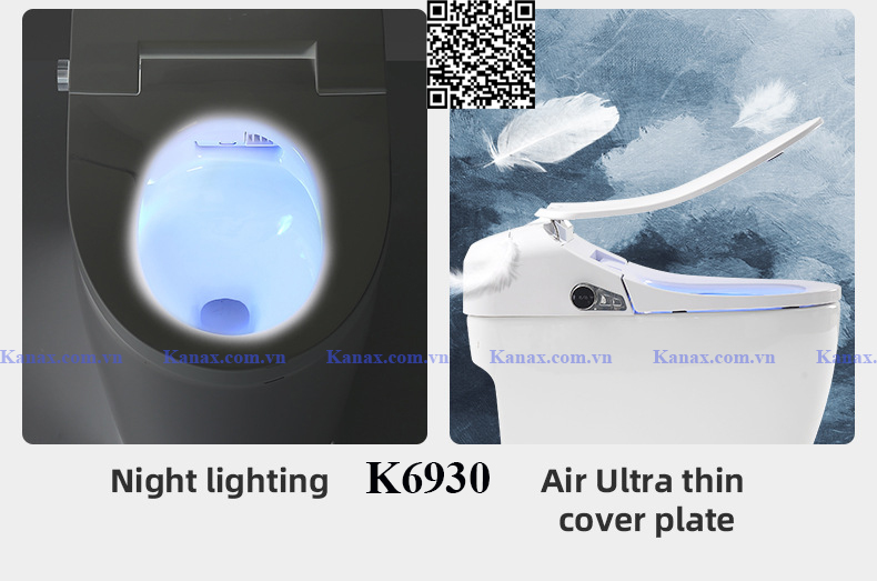 1.Đèn led hiển thị nhiệt độ. 2.Chế độ đóng nắp êm. 3.Tự động đóng mở nắp.