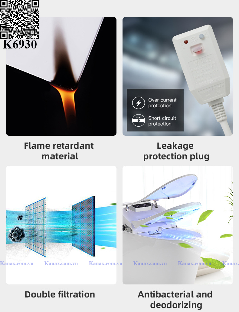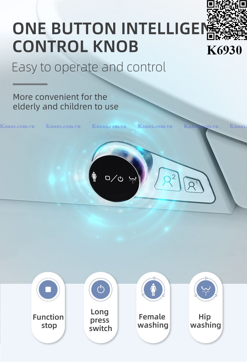 4.Chế độ vòi xịt hậu môn, xịt vệ sinh phụ nữ. 5.Chế độ sấy khô. 6.Chế độ làm ấm bệ ngồi.