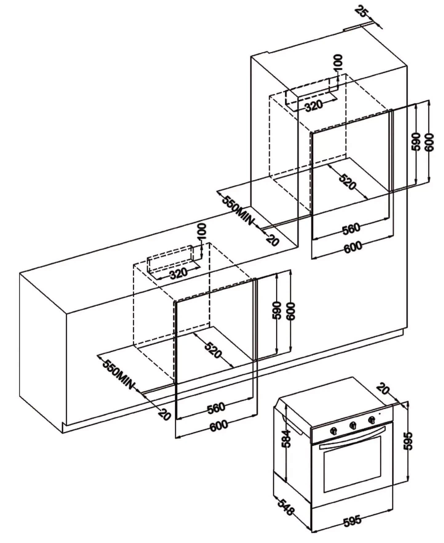 ✅ Kích thước âm tủ: 584 x 584 x 548 mm (Rộng x Cao x Sâu)