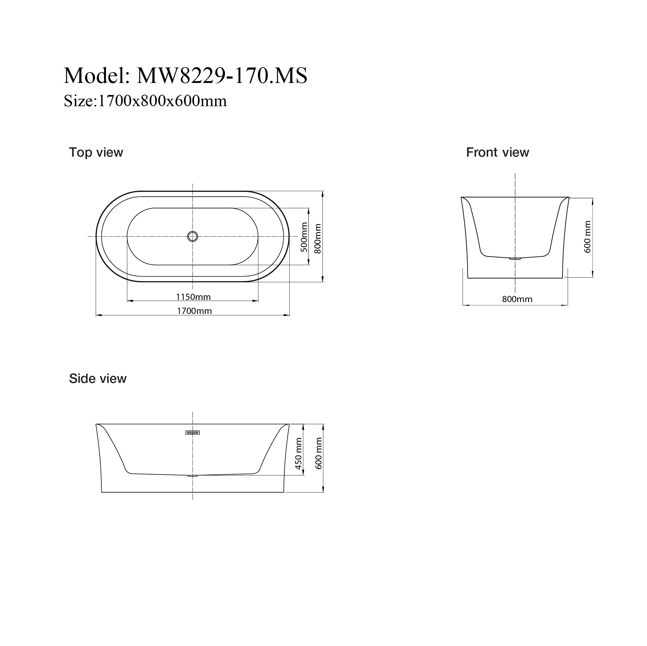 MW8229-170MS - Bồn tắm massager cao cấp, chất liệu Acrylic. Kích thước: 1700 x 800 x 600(mm)