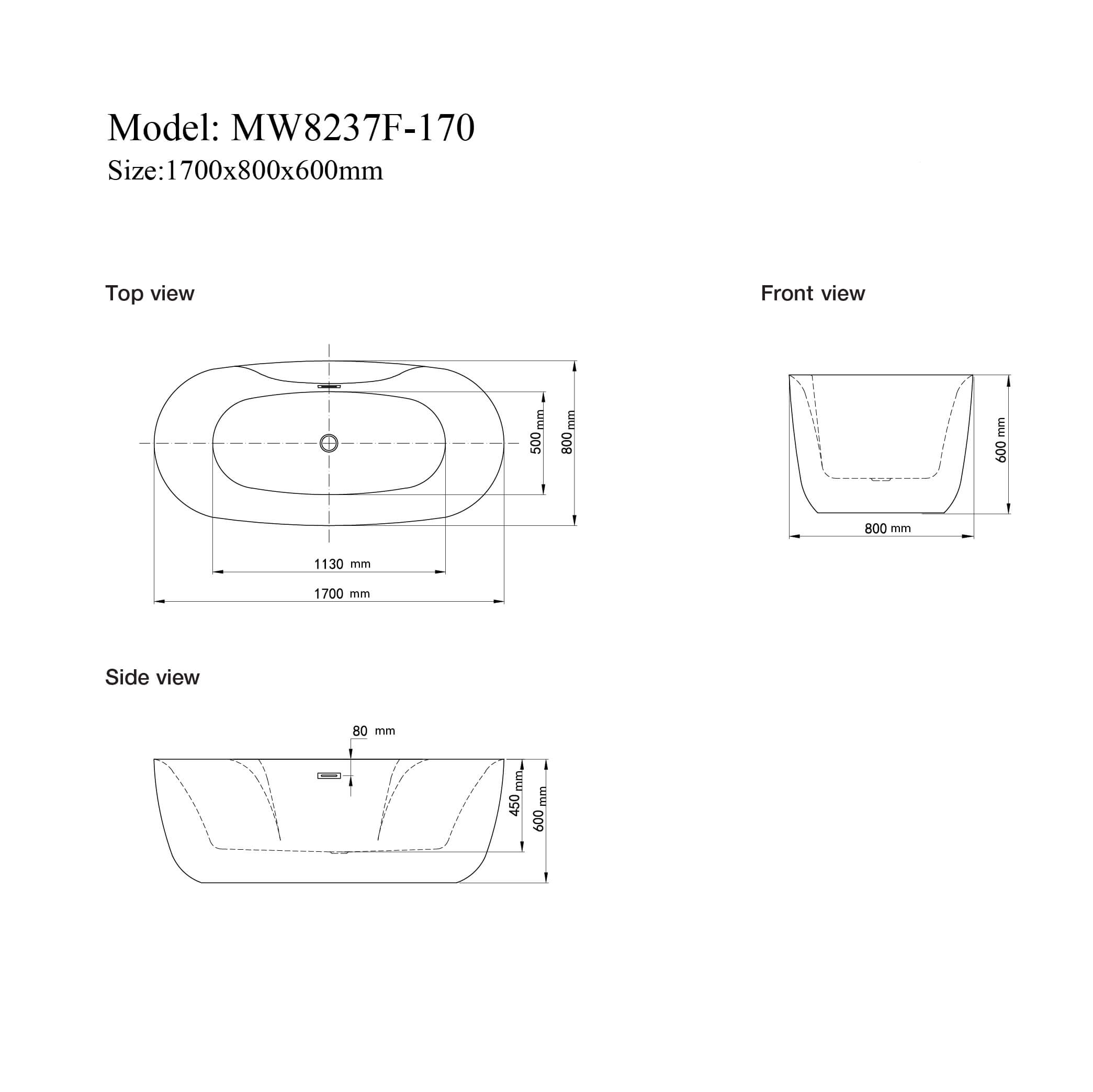 MW8237F-170 - Bồn tắm ngâm cao cấp, chất liệu Acrylic. Kích thước: 1700 x 800 x 600 (mm)