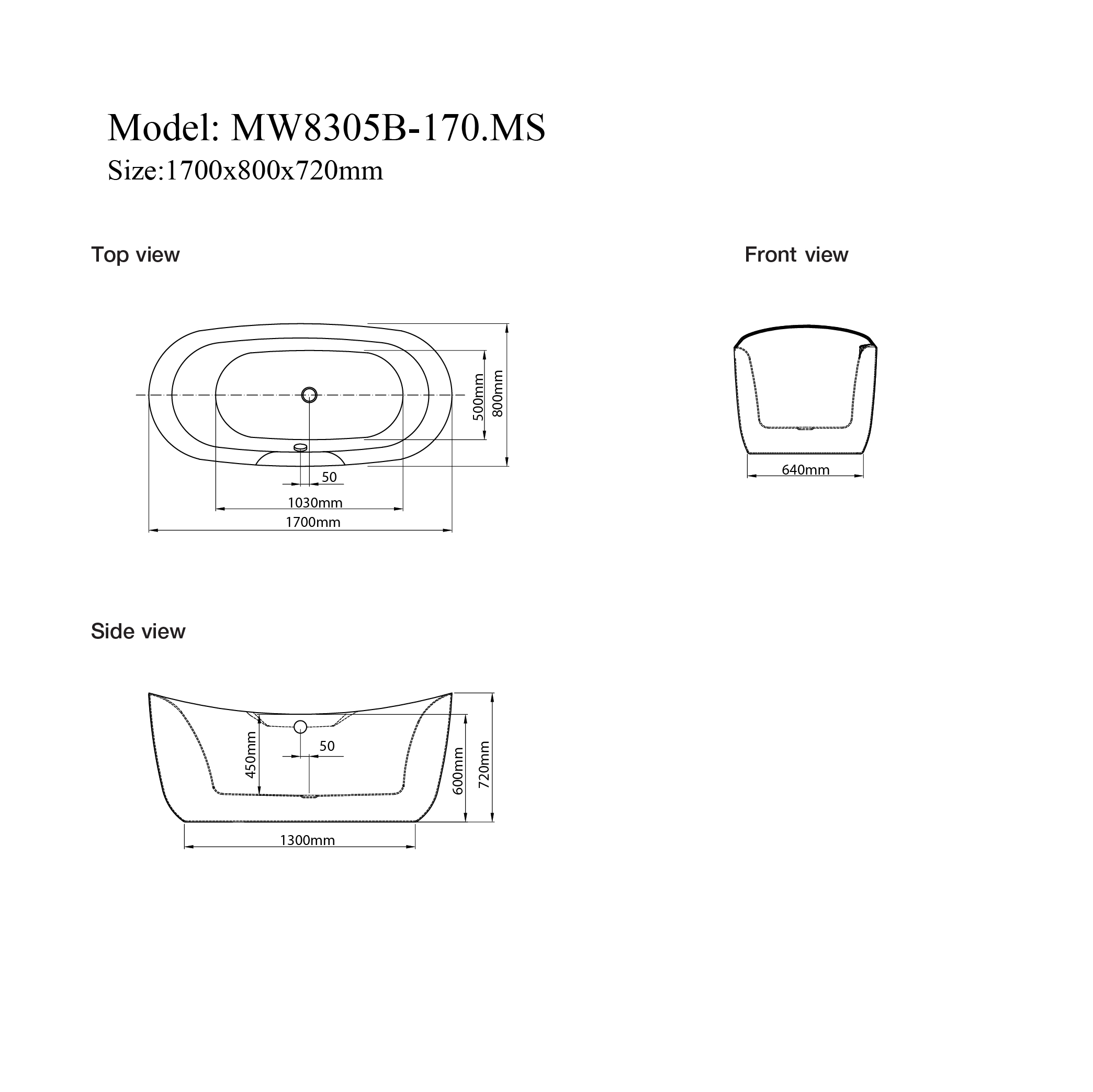 MW8305B-170MS - Bồn tắm massager cao cấp, chất liệu Acrylic. Kích thước: 1700 x 800 x 720(mm)