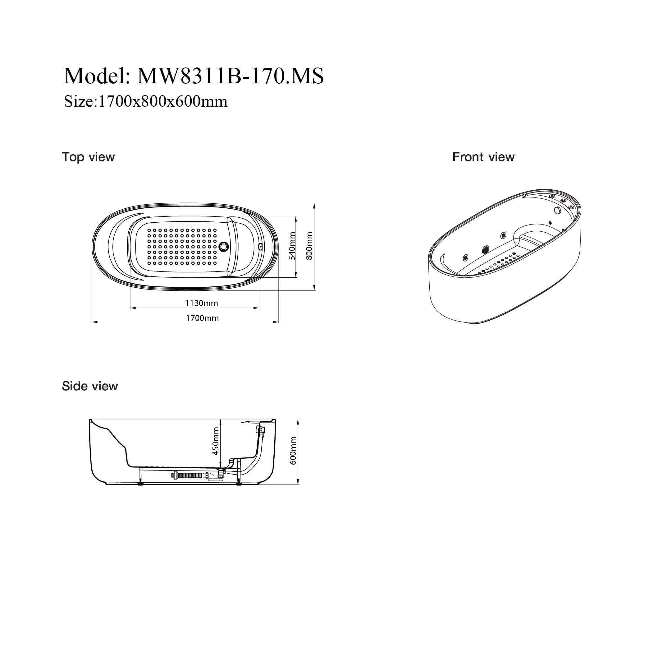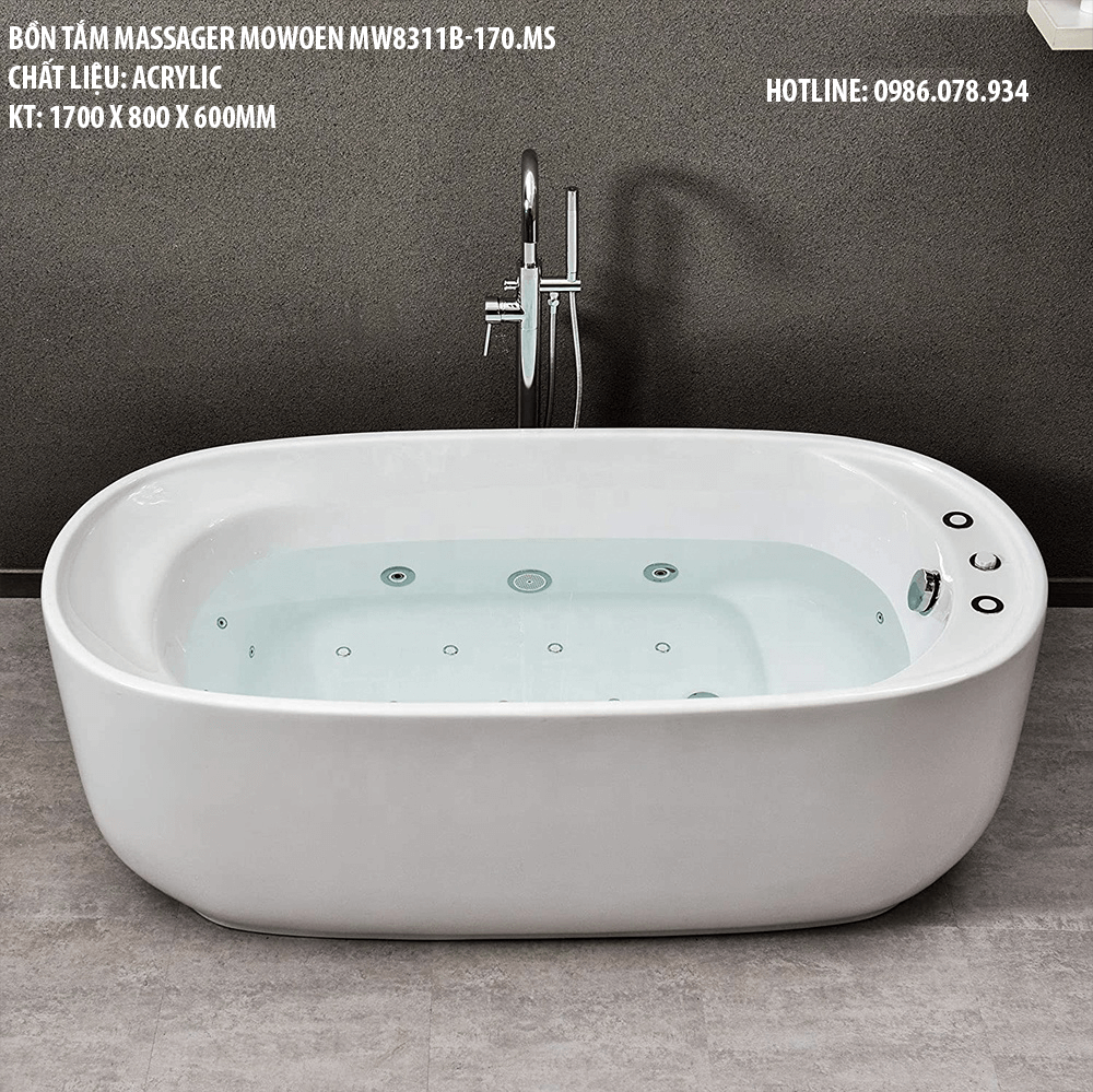 MW8311B-170MS - Bồn tắm massager cao cấp, chất liệu Acrylic. Kích thước: 1700 x 800 x 600(mm)