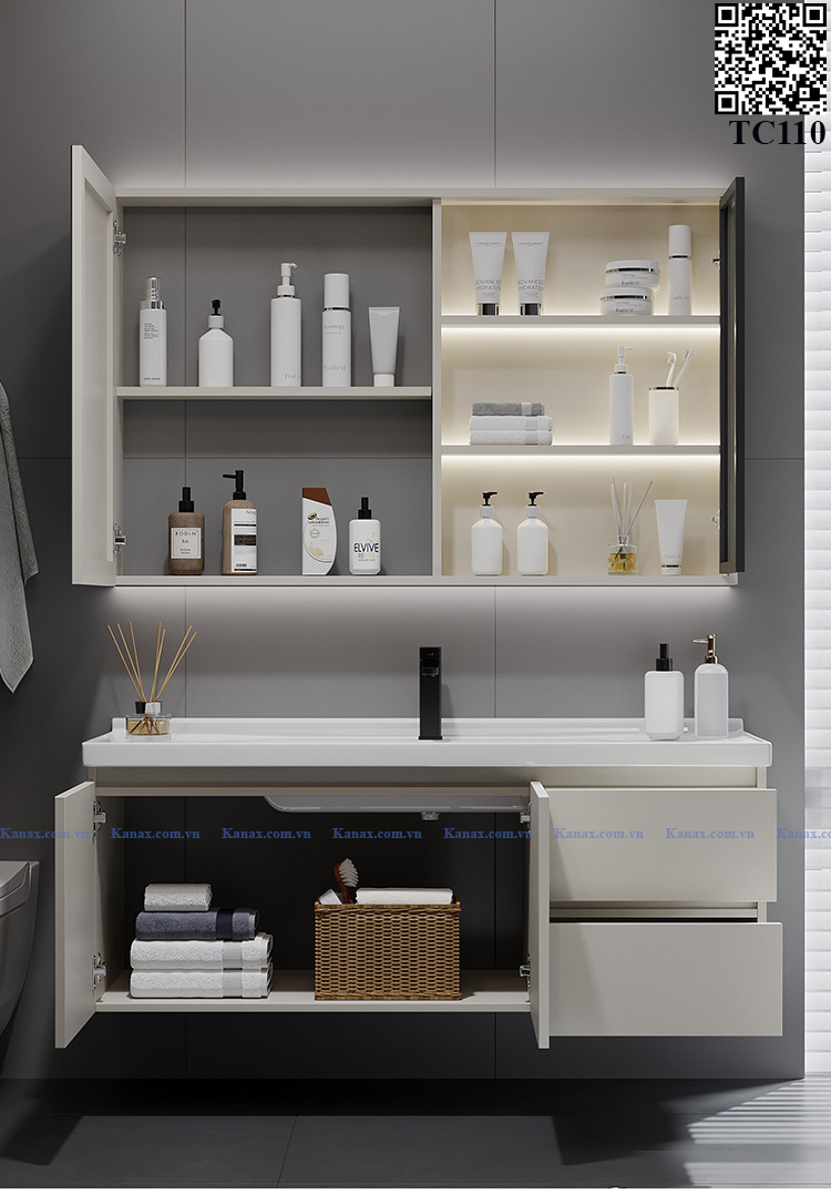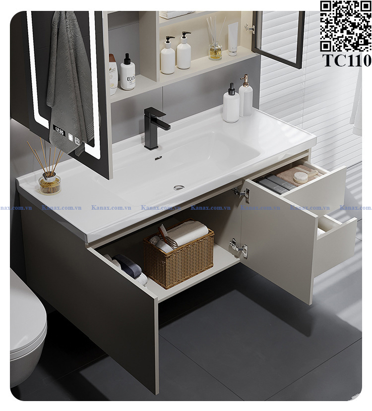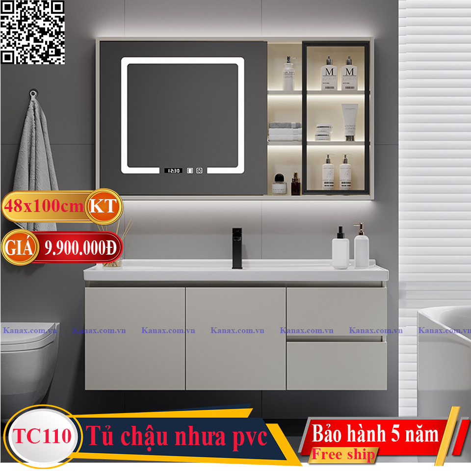 TC110 - Tủ chậu nhựa cao cấp, tủ gương led thông minh