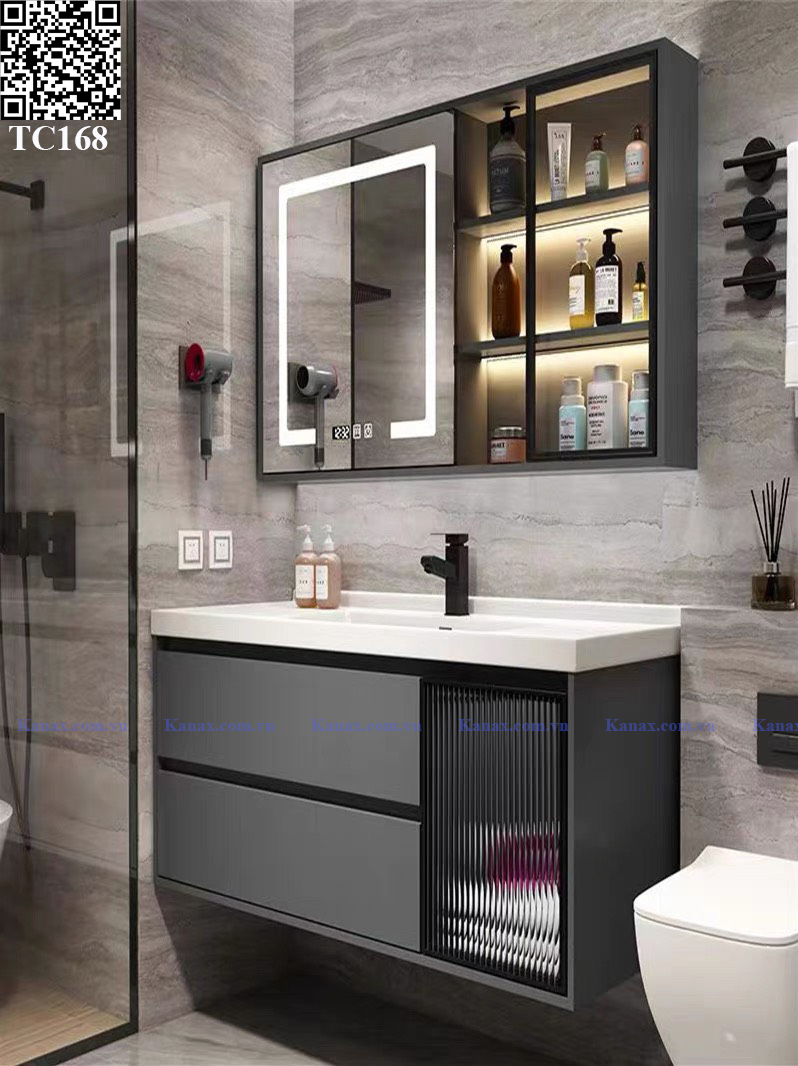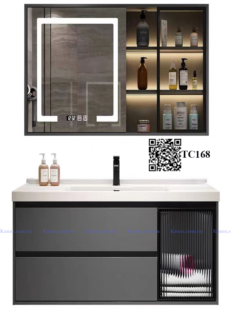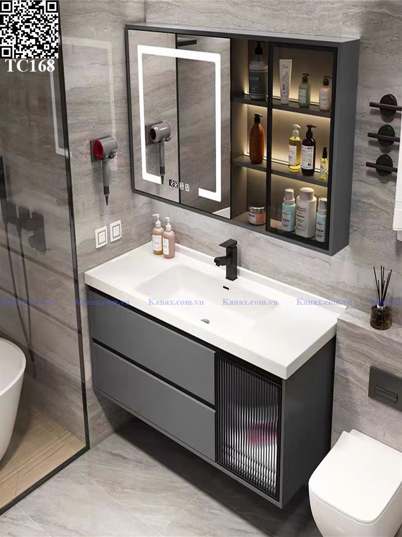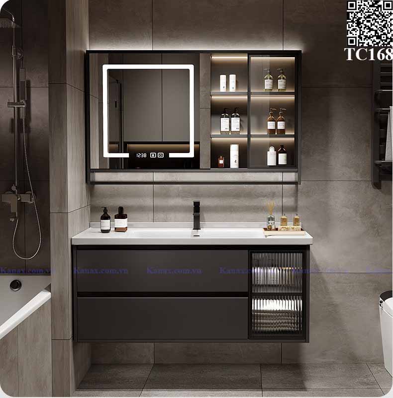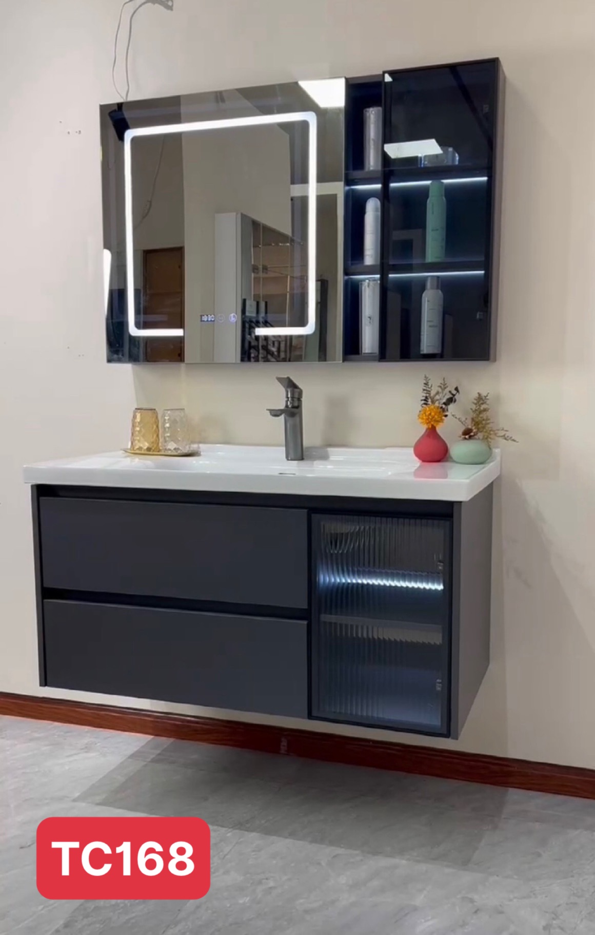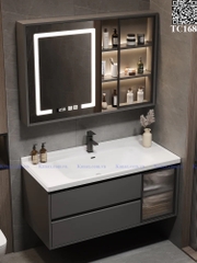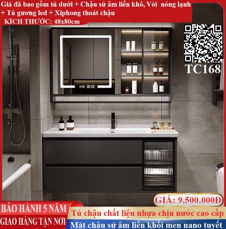 TC168 - Tủ chậu nhựa Plywood + Tủ gương led ,sấy, đồng hồ + Vòi nóng lạnh cao cấp - Hàng nhập khẩu nguyên bộ