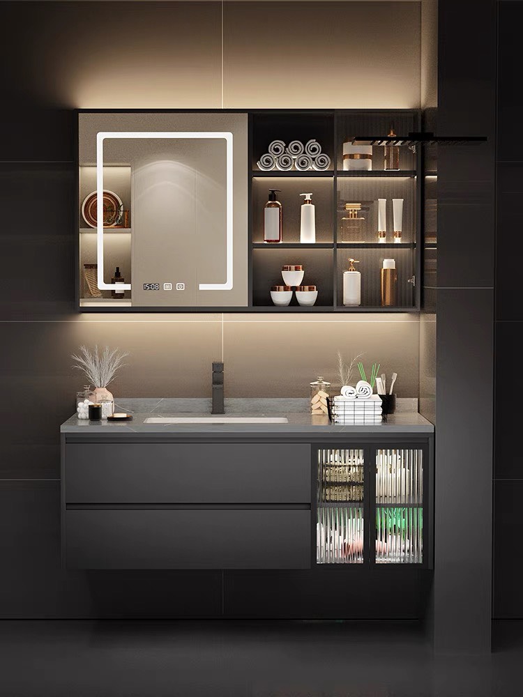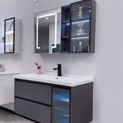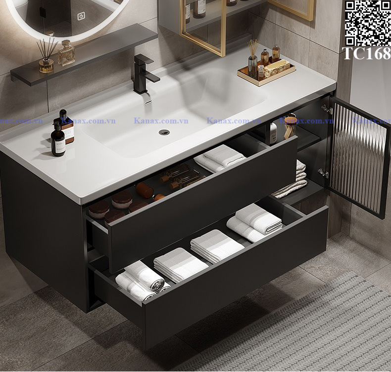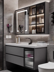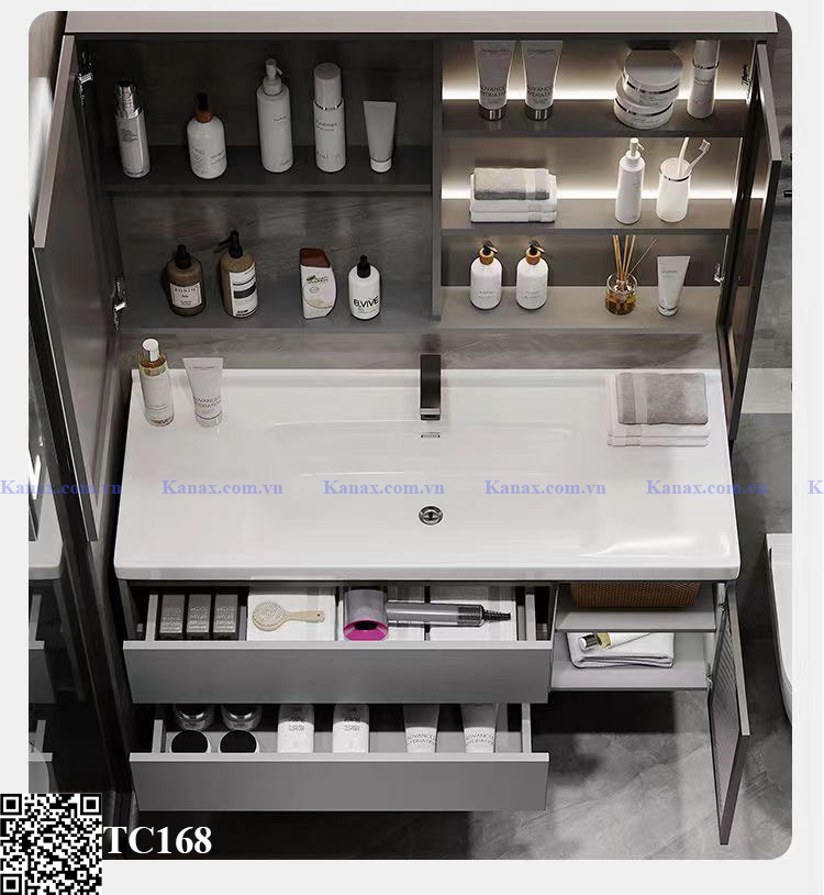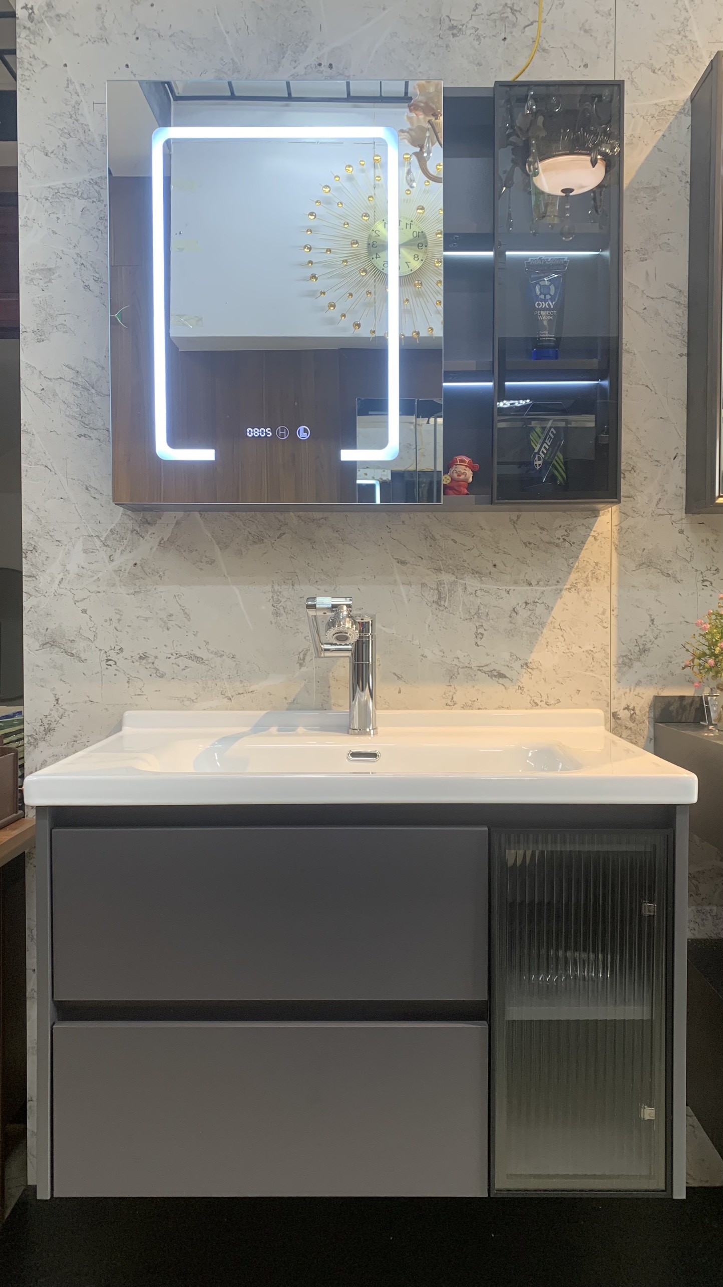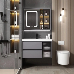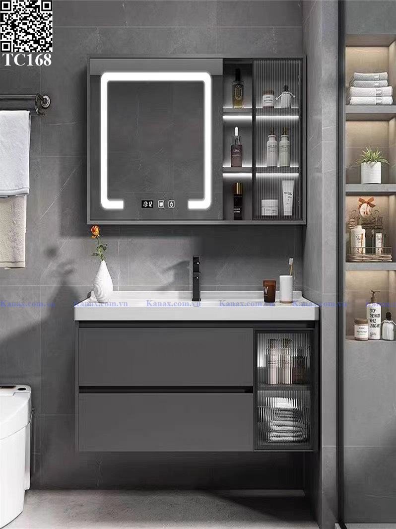 TC168 - Tủ chậu nhựa Plywood + Tủ gương led ,sấy, đồng hồ + Vòi nóng lạnh cao cấp - Hàng nhập khẩu nguyên bộ