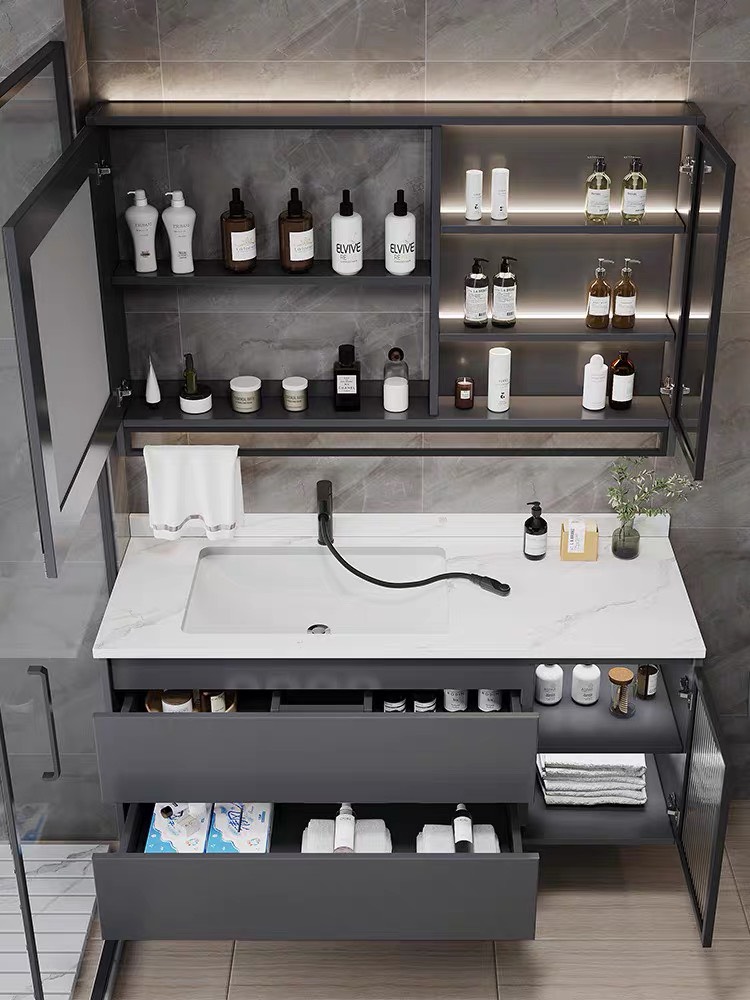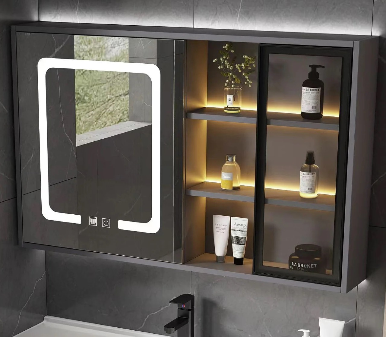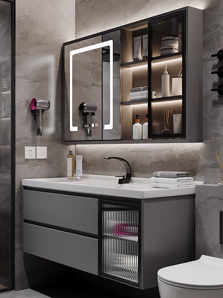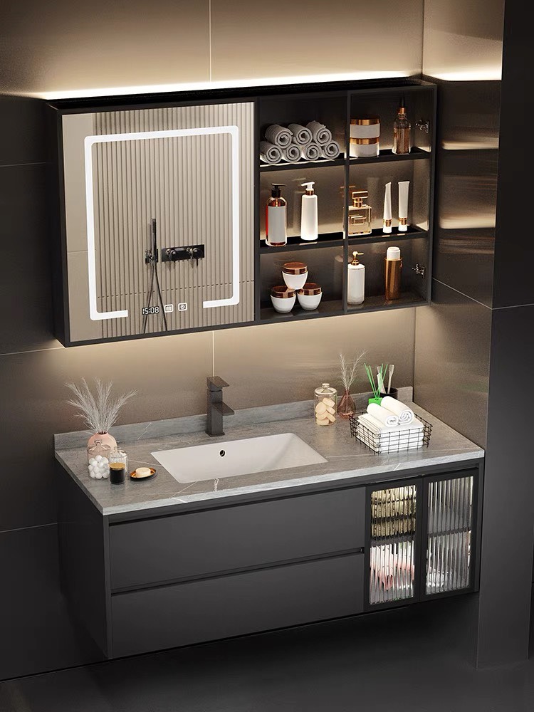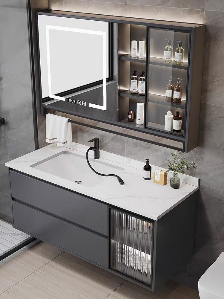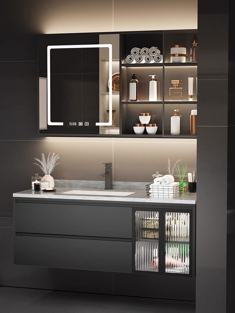 TC168 - Tủ chậu nhựa Plywood + Tủ gương led ,sấy, đồng hồ + Vòi nóng lạnh cao cấp - Hàng nhập khẩu nguyên bộ