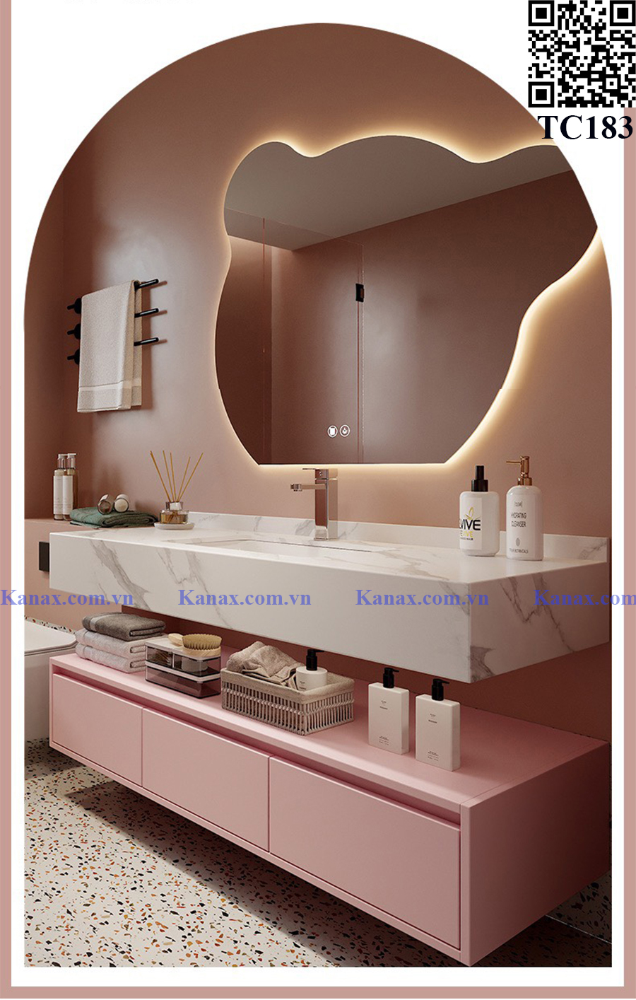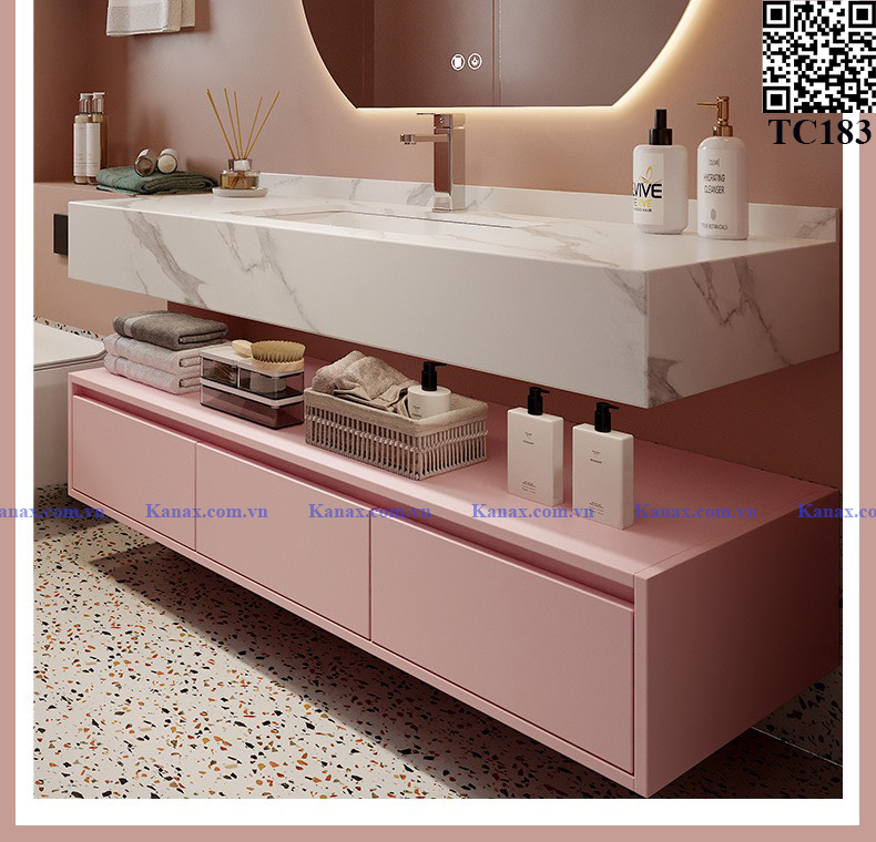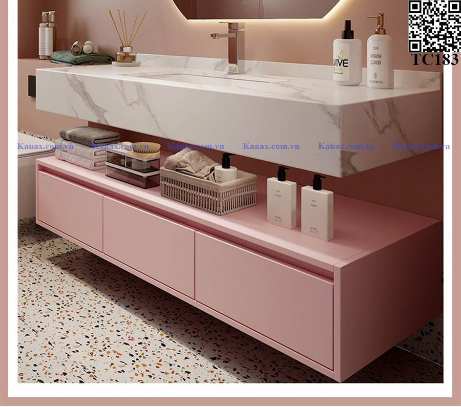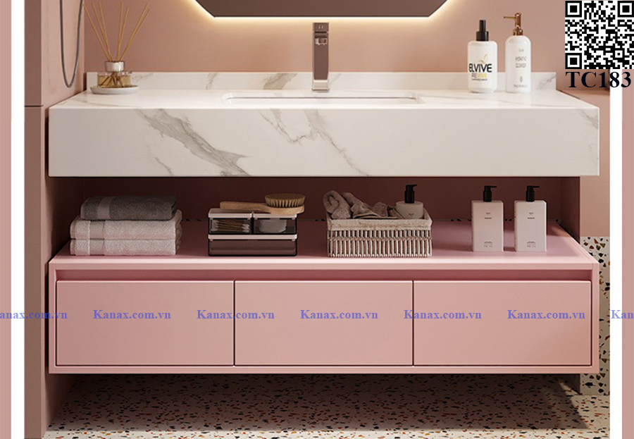 TC183 - Tủ chậu màu hồng cao cấp