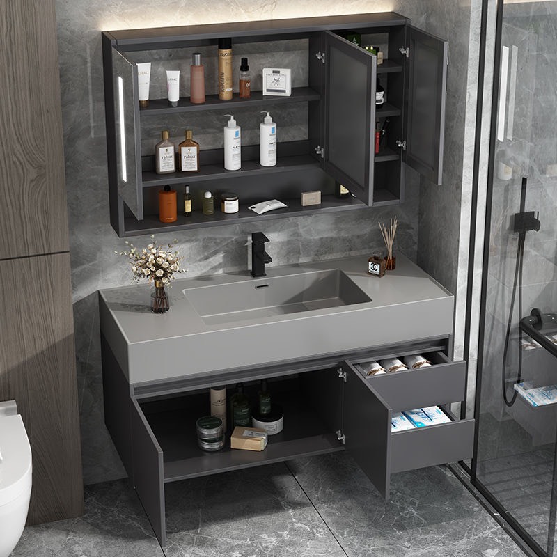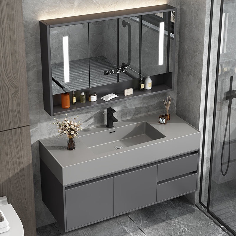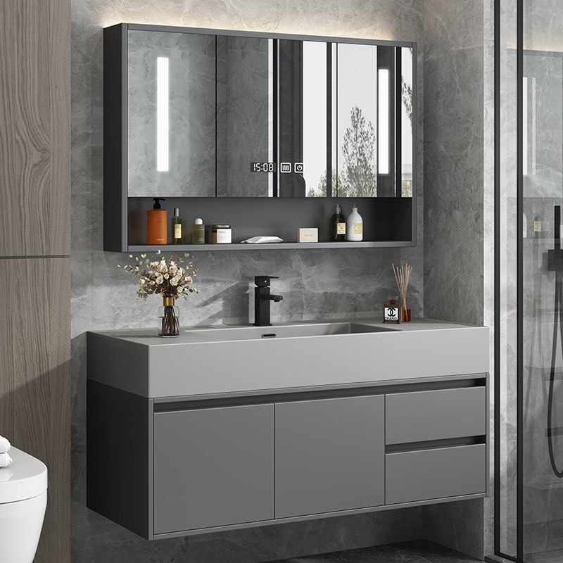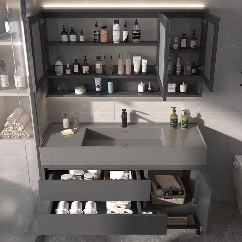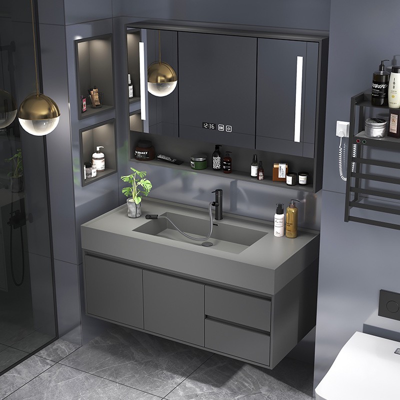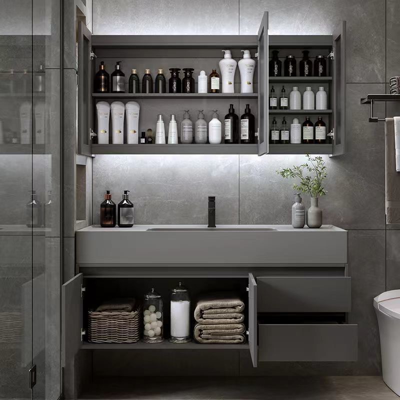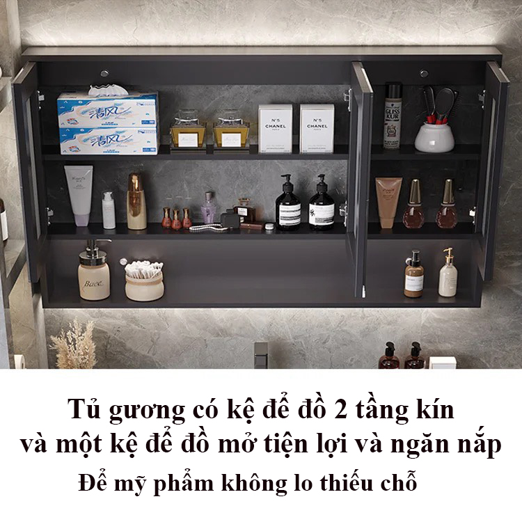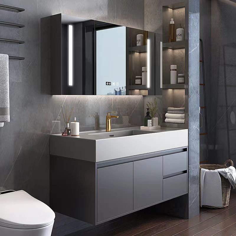 TC187 - Tủ chậu nhựa, tủ gương thông minh kết hợp chậu đá thạch anh nano liền khối