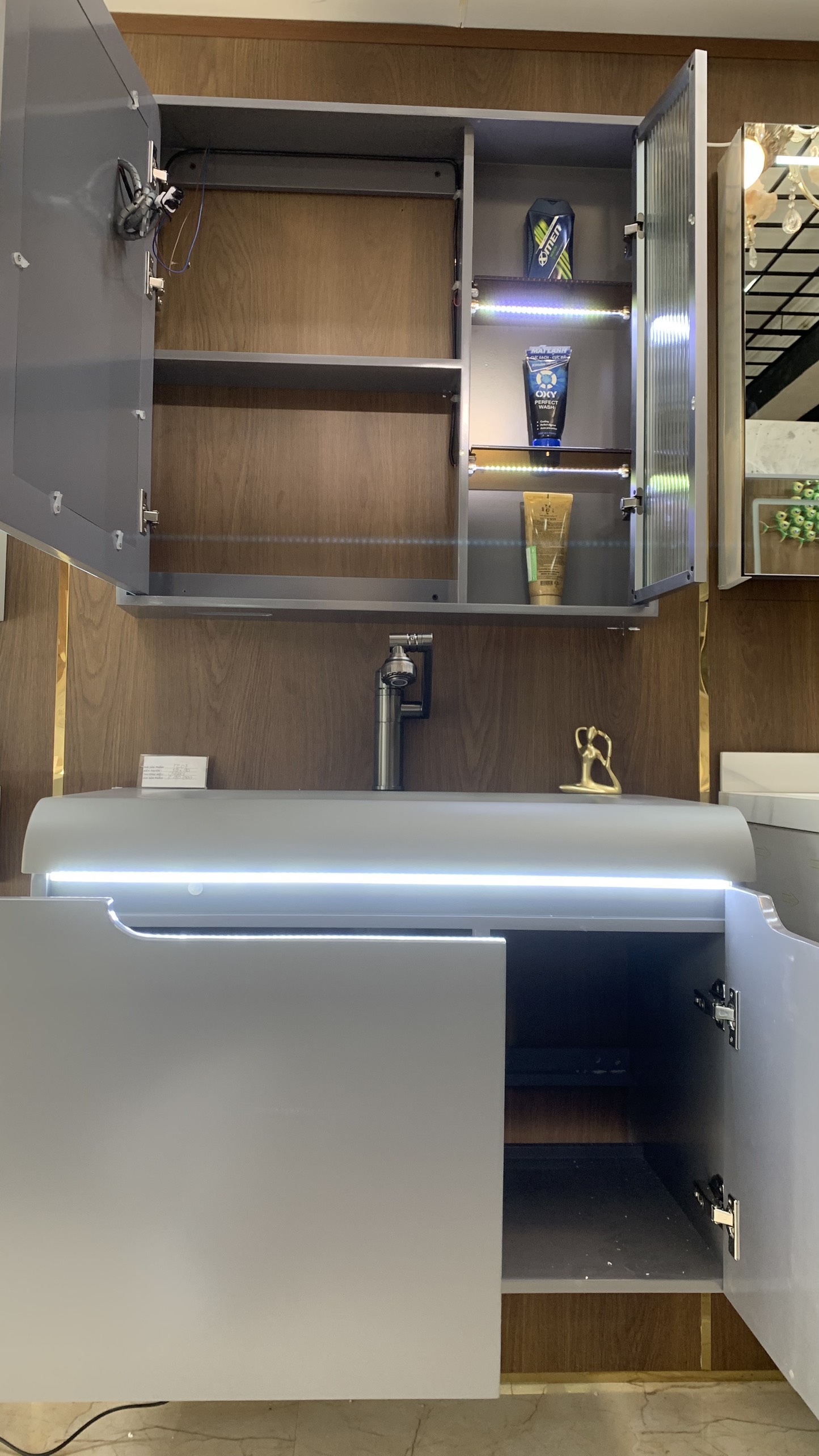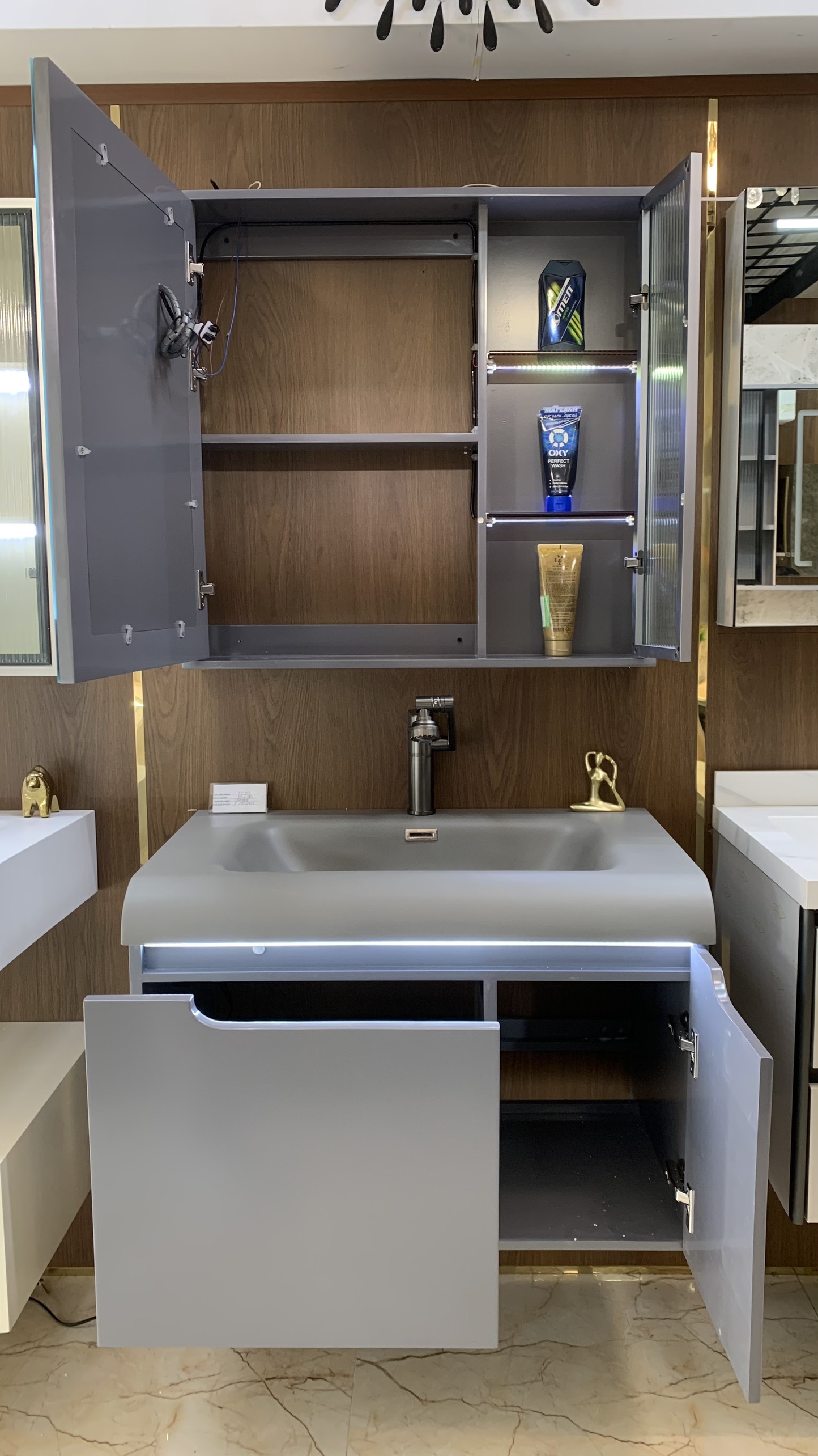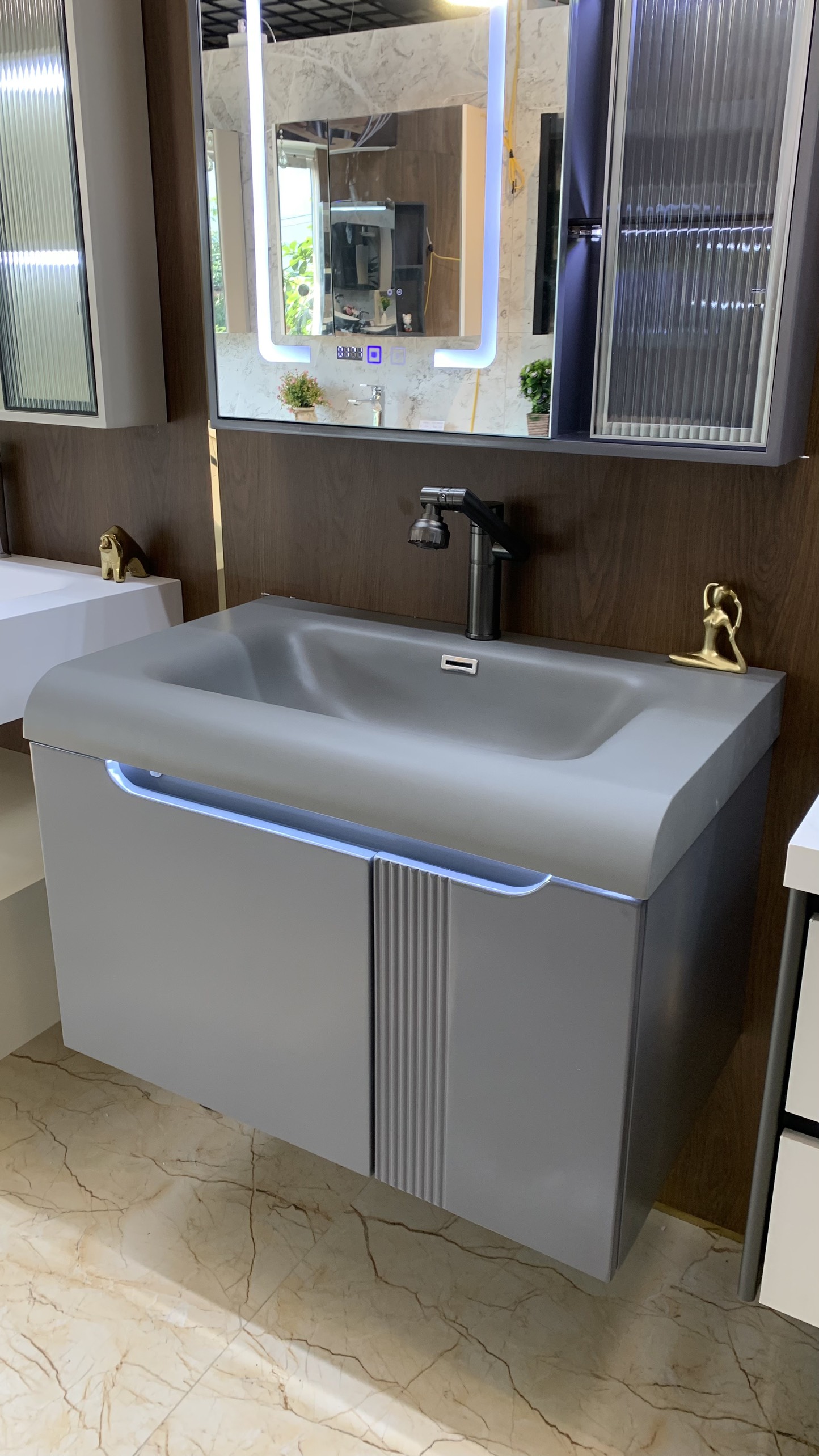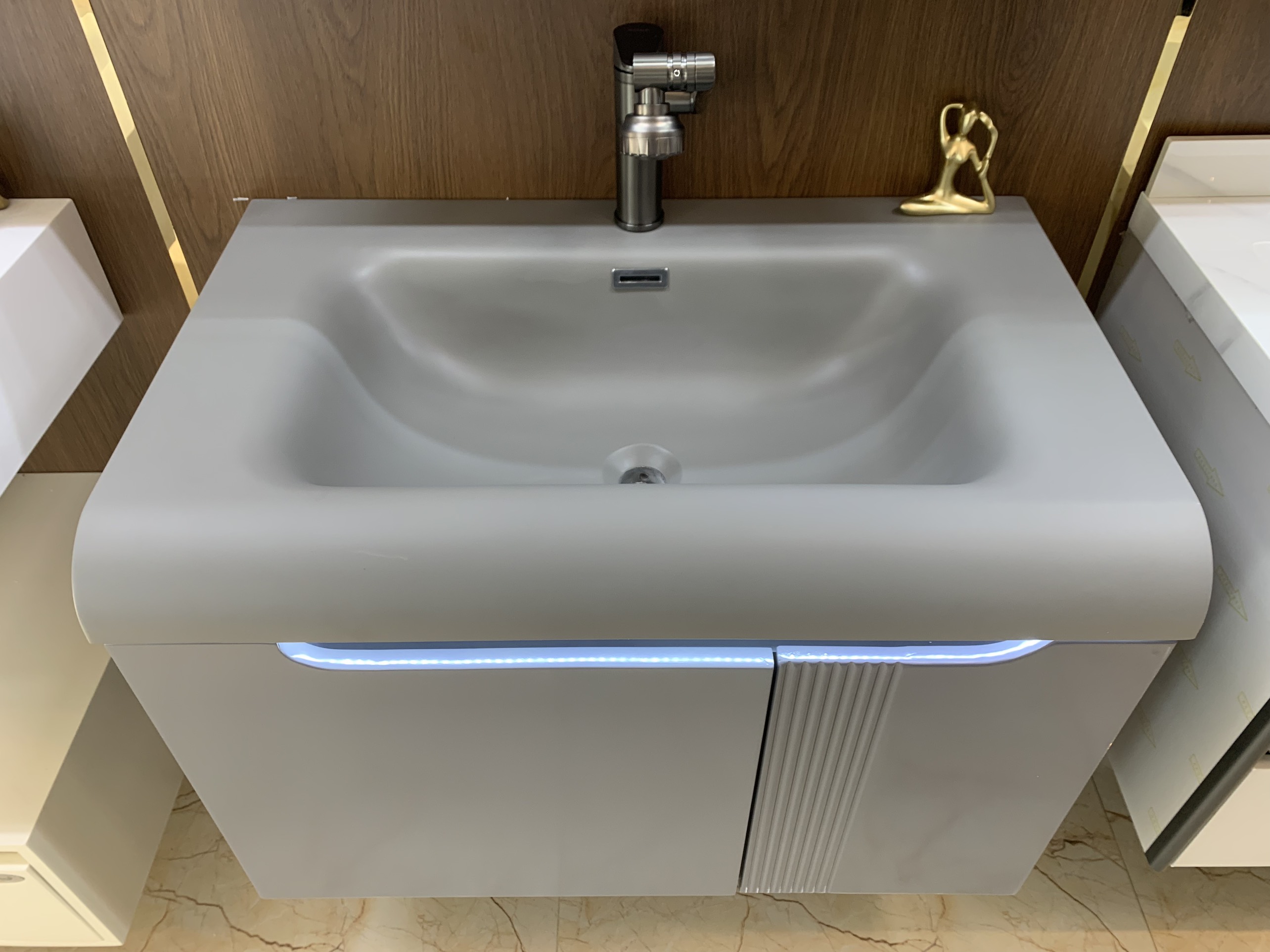 TC195 - Tủ chậu nhựa mặt chậu đá Thạch Anh liền khối màu ghi xám cao cấp
