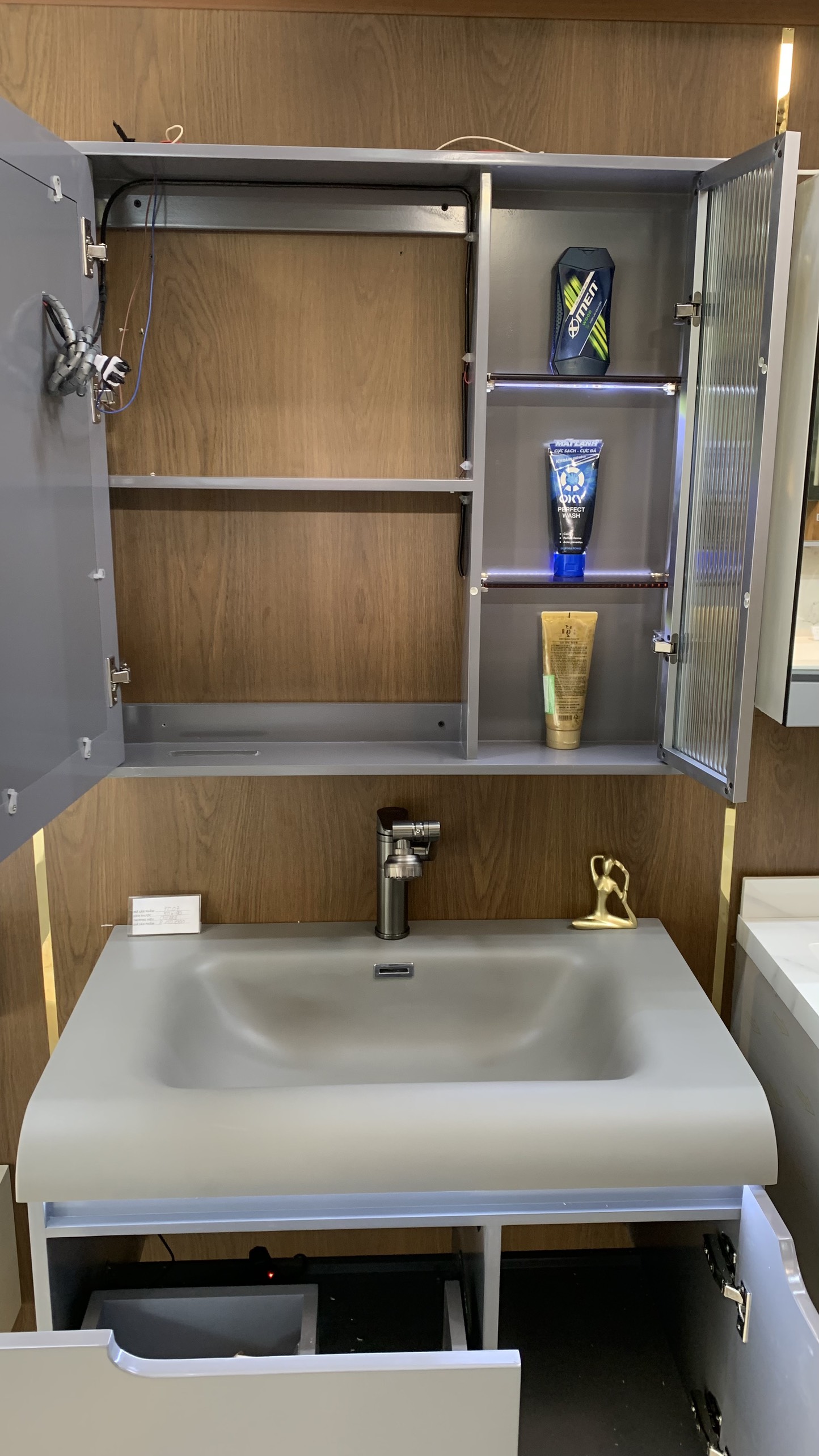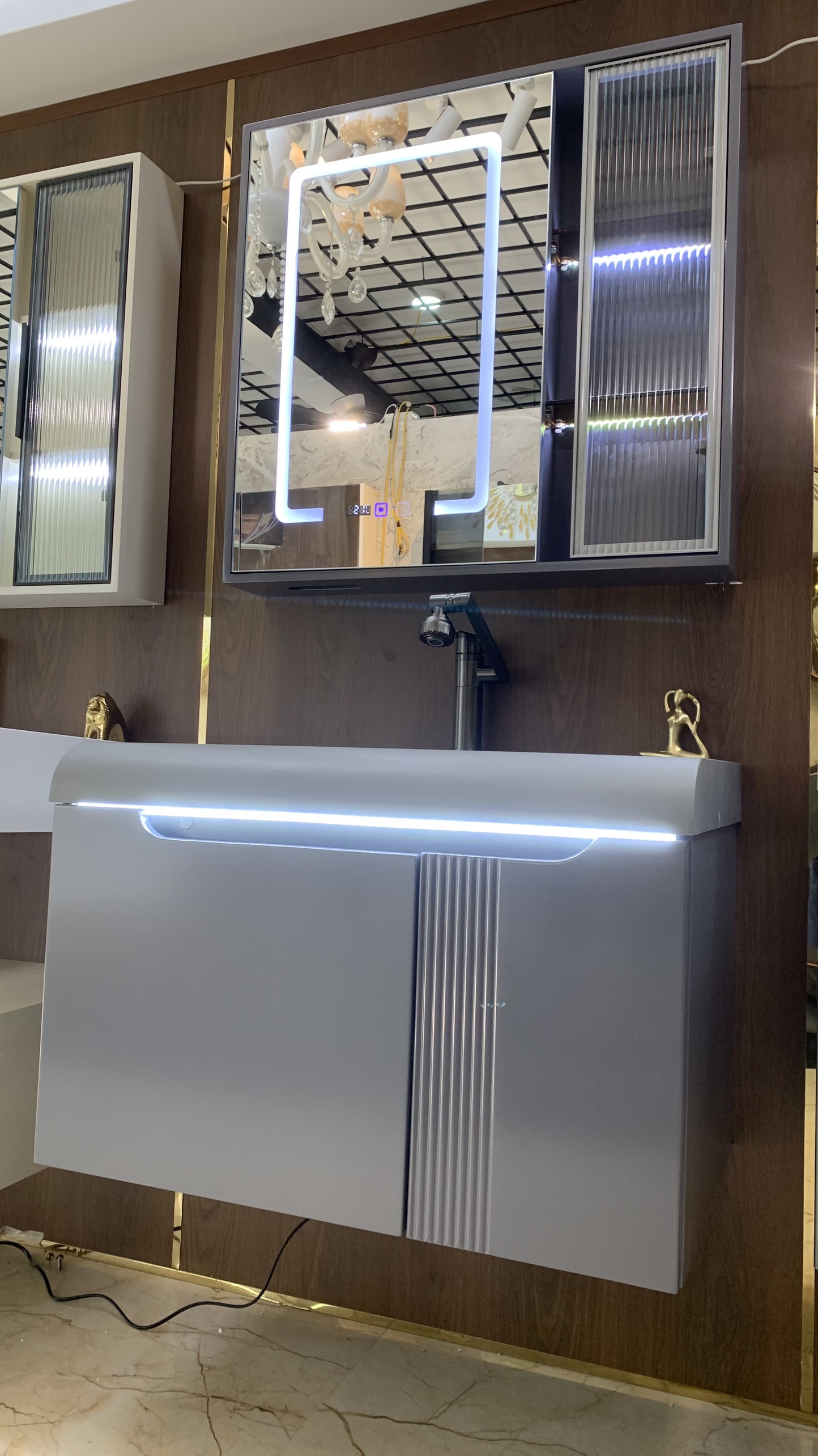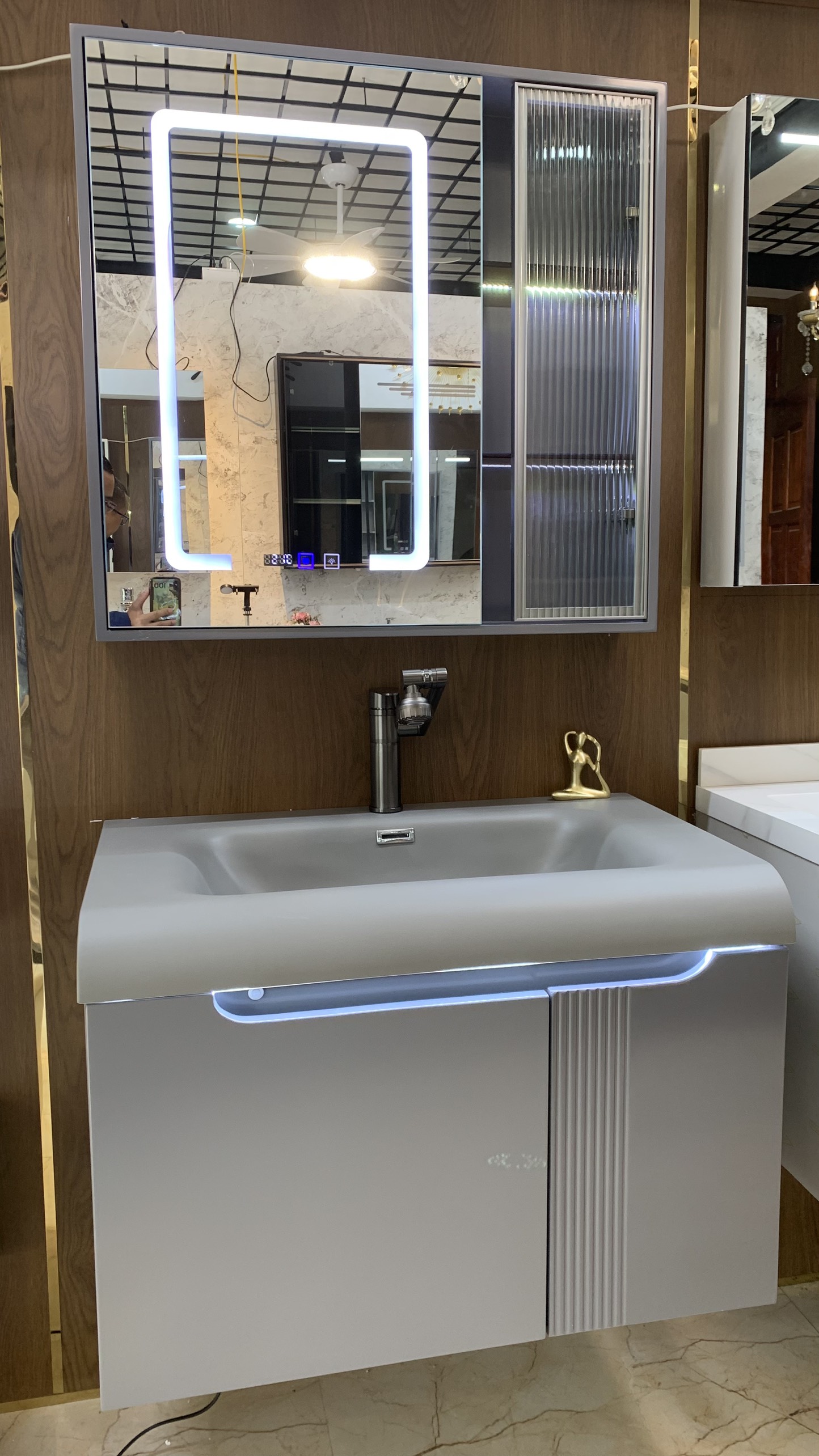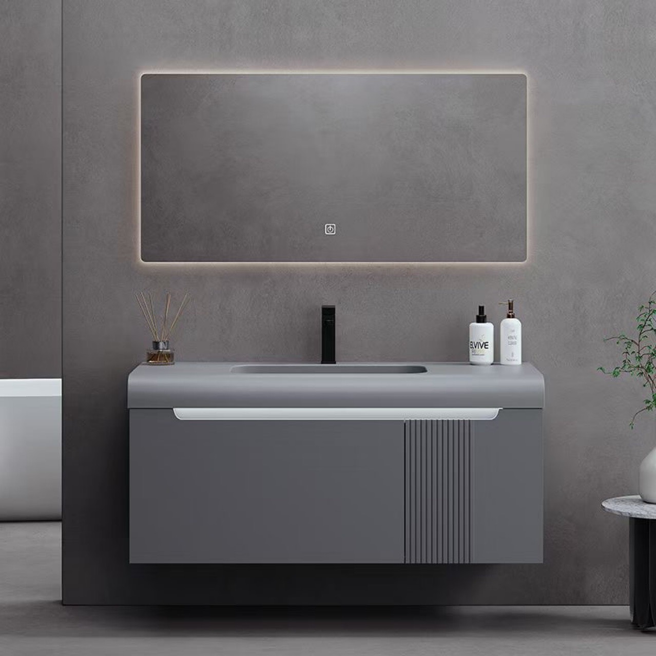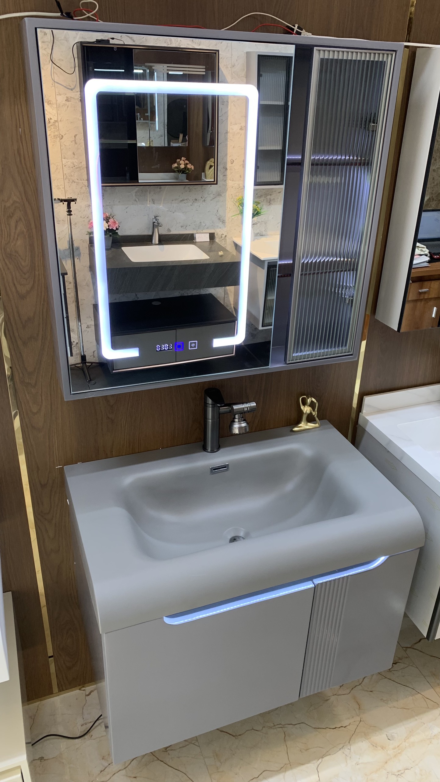 TC195 - Tủ chậu nhựa mặt chậu đá Thạch Anh liền khối màu ghi xám cao cấp