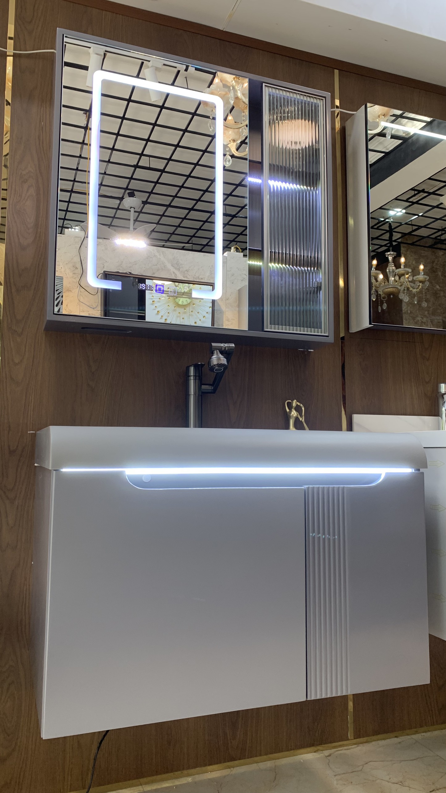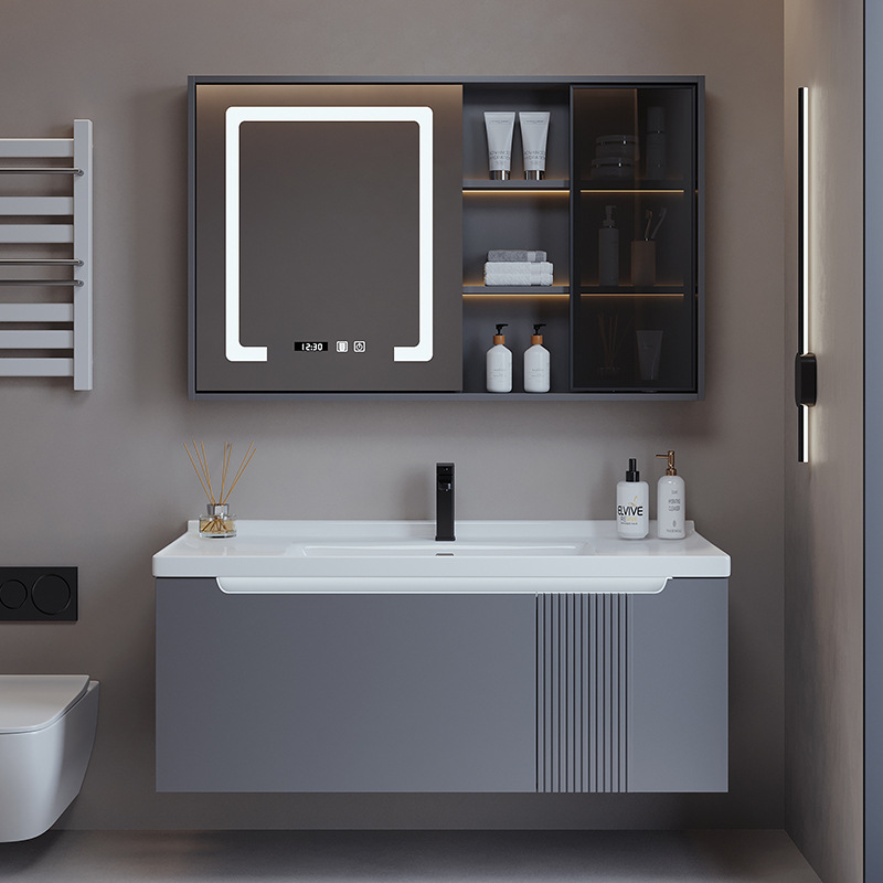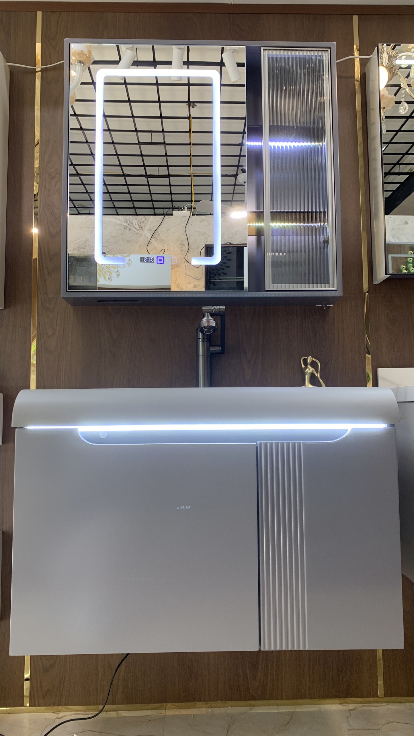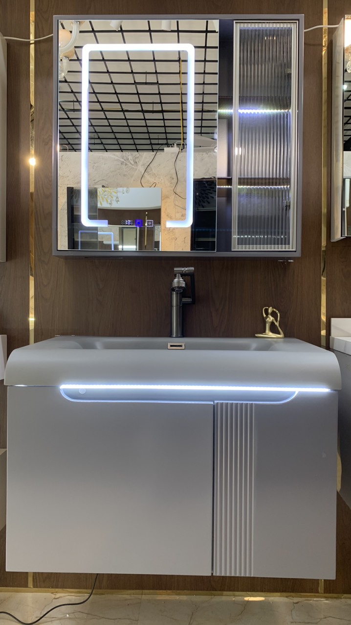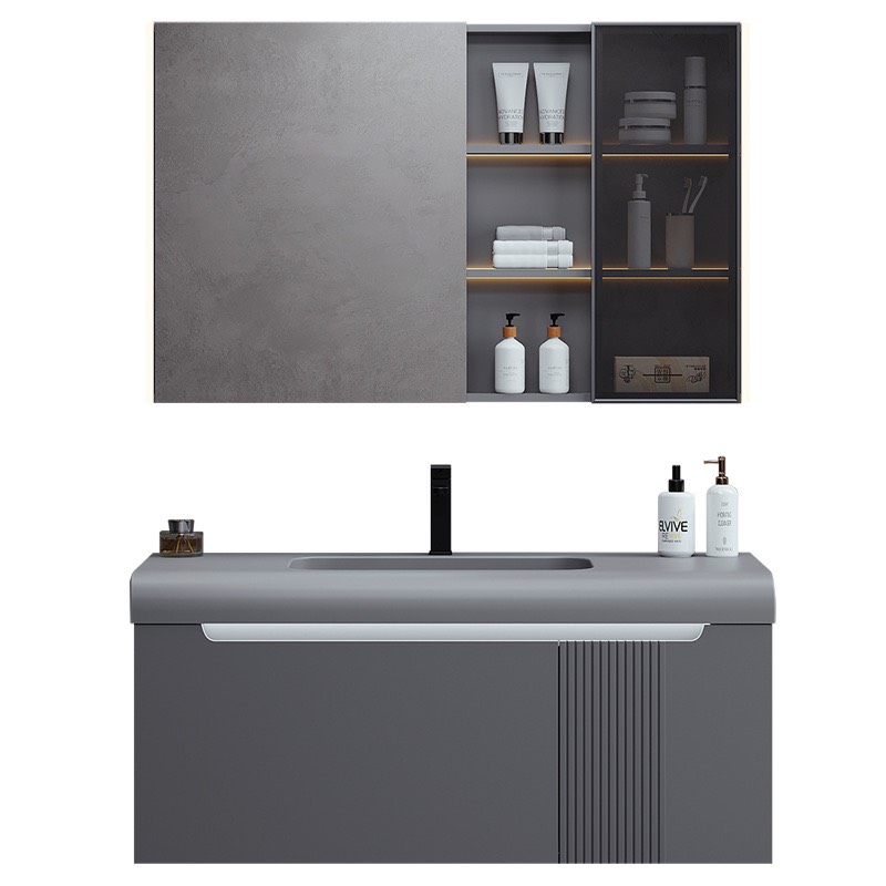 TC195 - Tủ chậu nhựa mặt chậu đá Thạch Anh liền khối màu ghi xám cao cấp