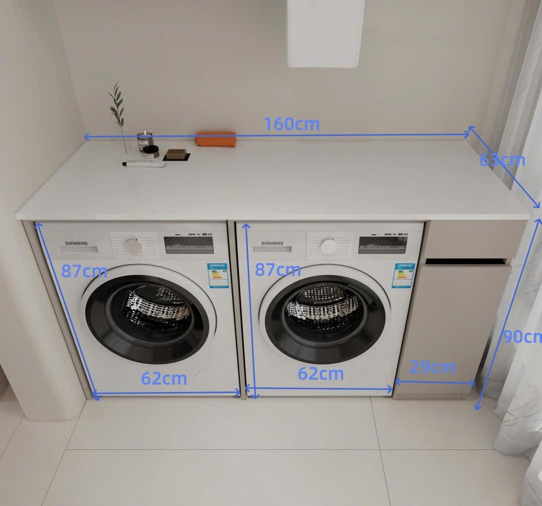 TG03 - Tủ Kệ máy giặt cao cấp, mặt đá nhân tạo, tủ inox, kích thước tùy chỉnh