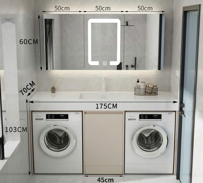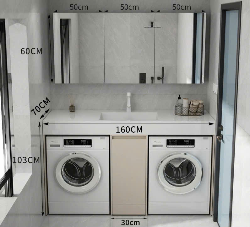 TG04 - Tủ Kệ máy giặt cao cấp, mặt đá nhân tạo kết hợp chậu sứ âm, tủ inox, kích thước tùy chỉnh
