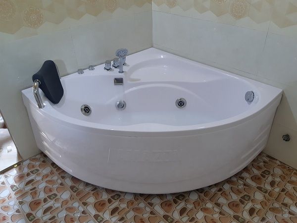 | Tính năng | Bồn tắm sục góc đơn, chân Inox, xifong đồng. |