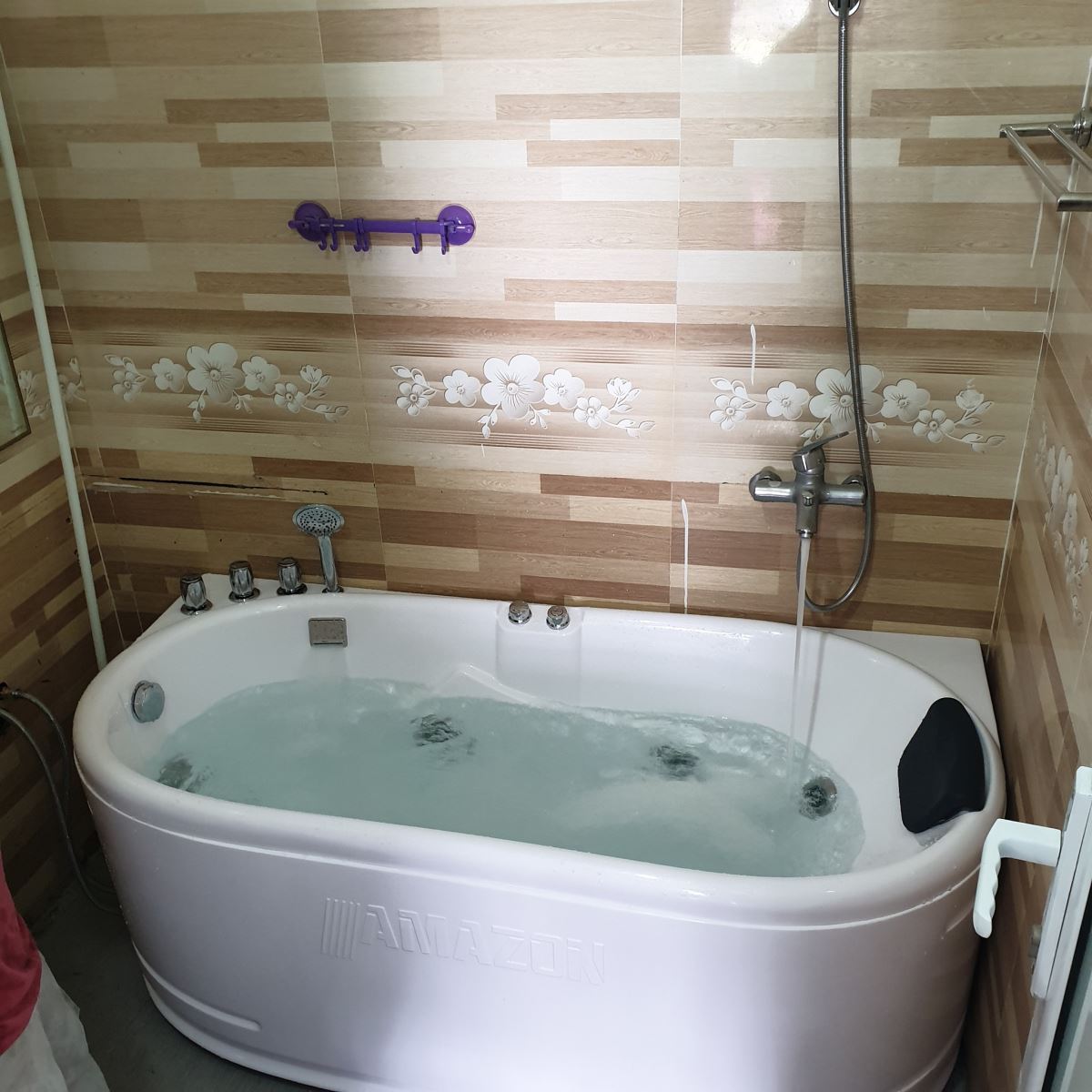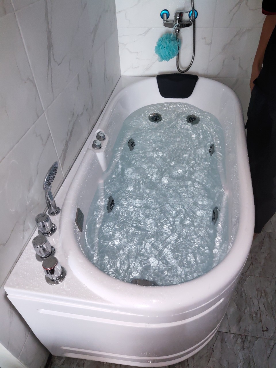 | Tính năng | Bồn tắm massager, chân Inox, xifong đồng. |